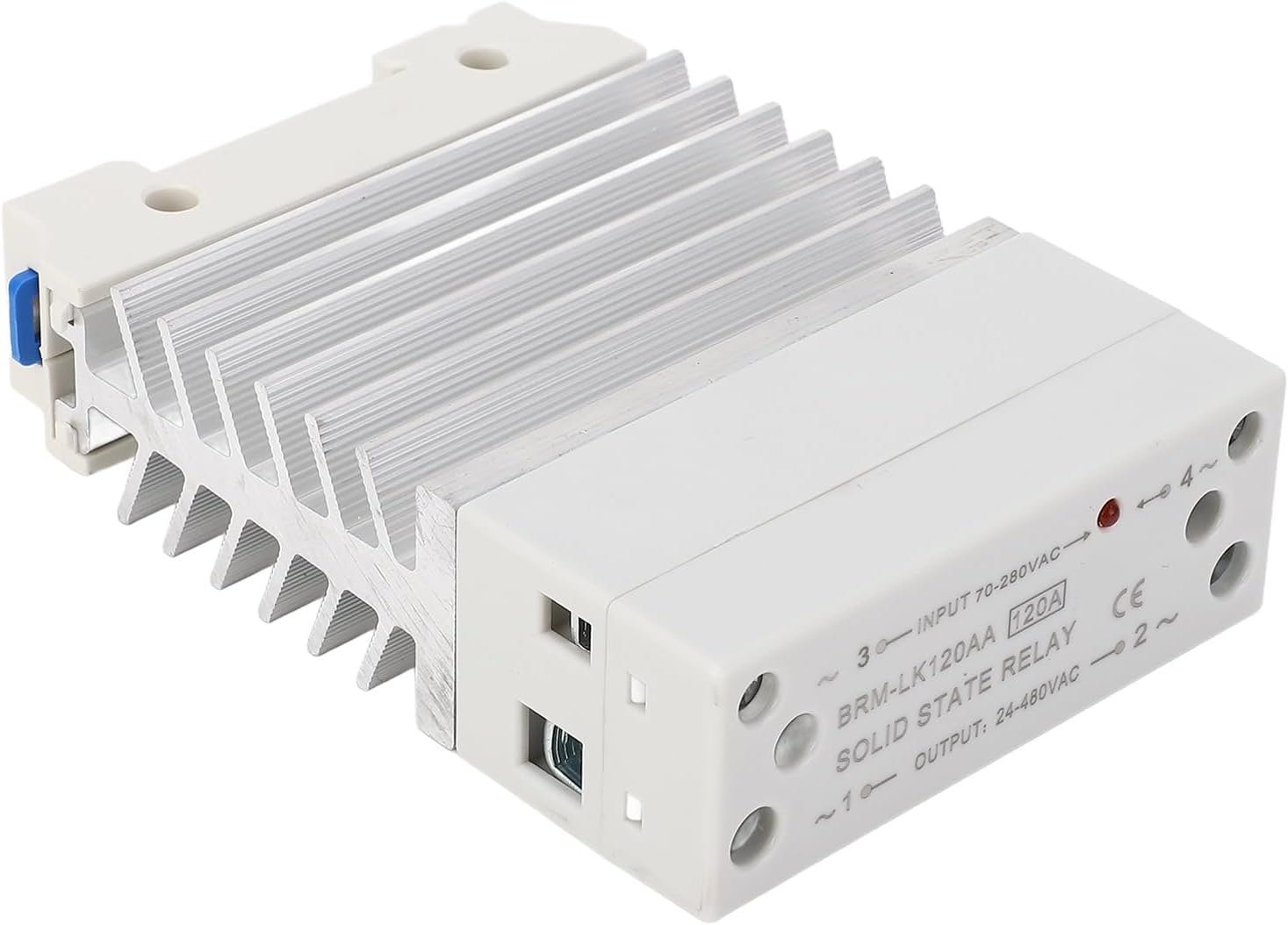 Relais Statique 120 A avec Dissipateur Thermique en Aluminium épais, Module SSR monophasé à Montage sur Rail, Entrée 70-280 VAC, Sortie 24-480 VAC
