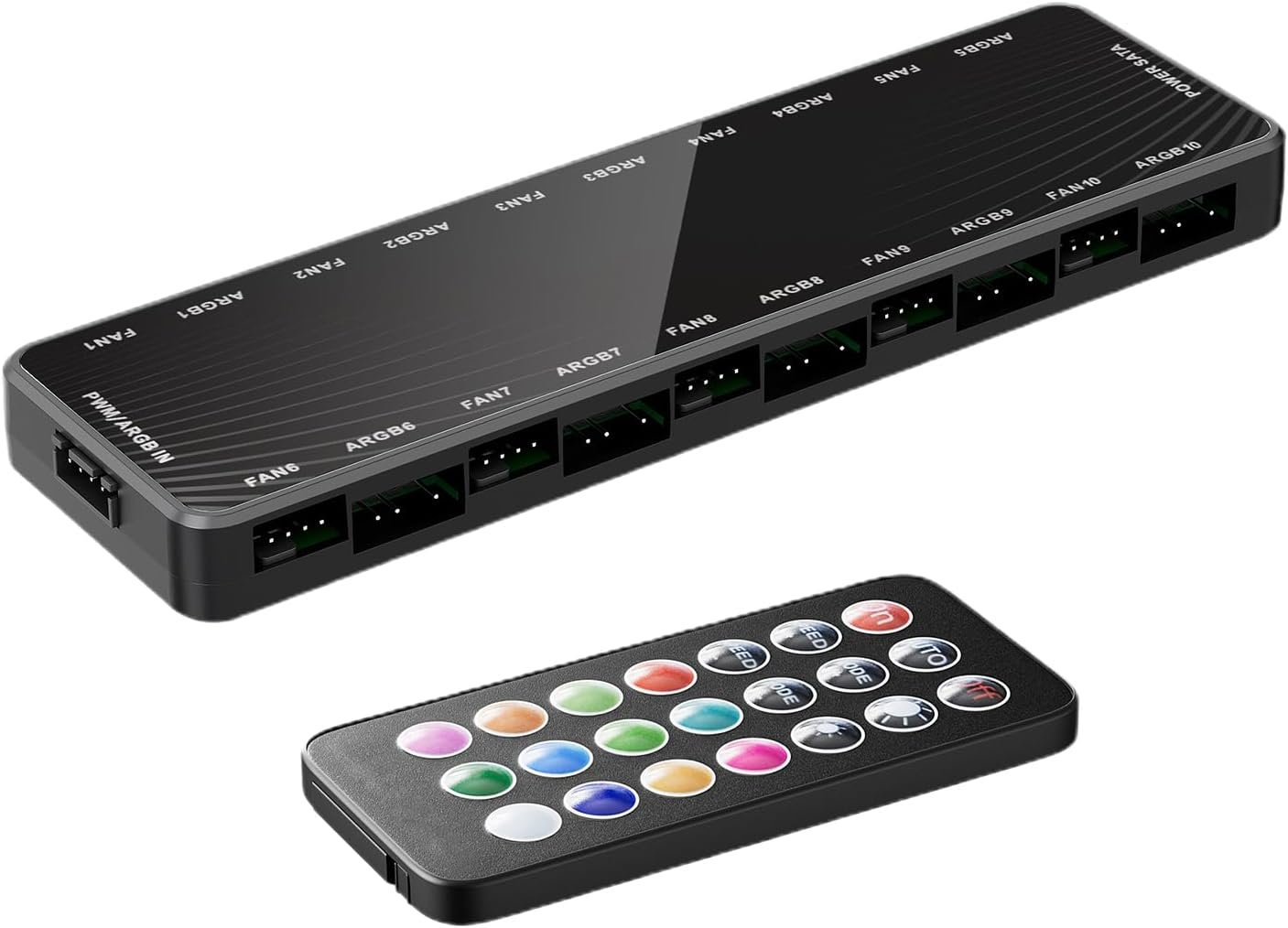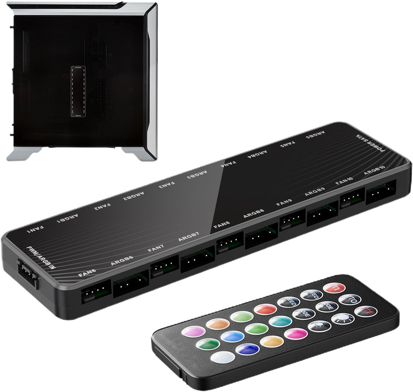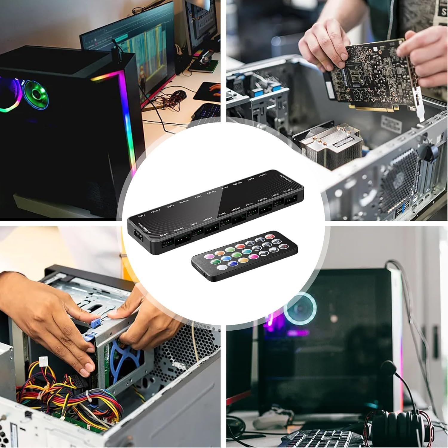 Répartiteur de ventilateur ARGB PWM pour PC, 16,5 x 4,89 x 1,59 cm, contrôleur de température, éclairage pour refroidissement d’ordinateur, composants d’éclairage, pièces de jeu ou constructions