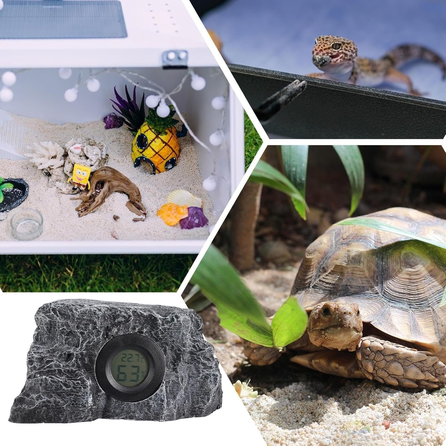 Reptile Thermostat – Réservoir Thermograph Aquarium Hydrometer,Realistic Aquarium Rock, Digital Aquarium Thermograph for Lizards, Snakes, Turtles