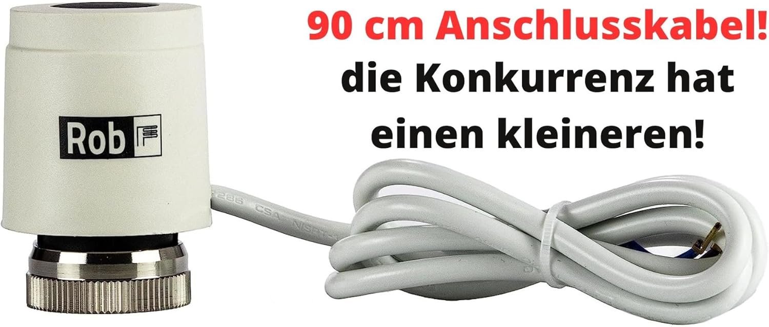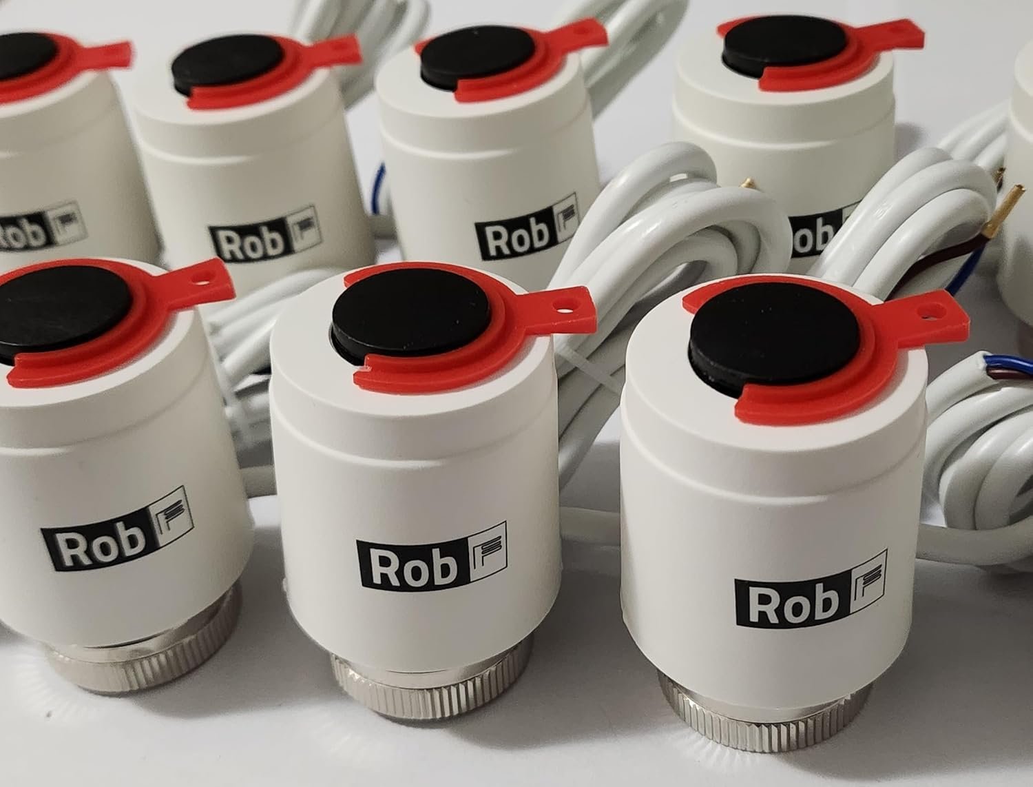 ROB – Servomoteur thermoélectrique pour chauffage au sol – Servomoteur thermique M30X1,5 230 V NC – Commande automatique de soupape, fonction First Open, IP54, 3 W, course de 5 mm – 10 pièces