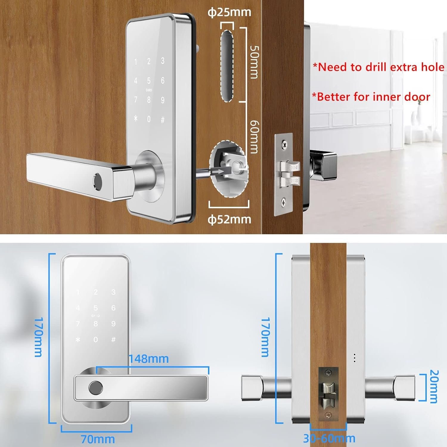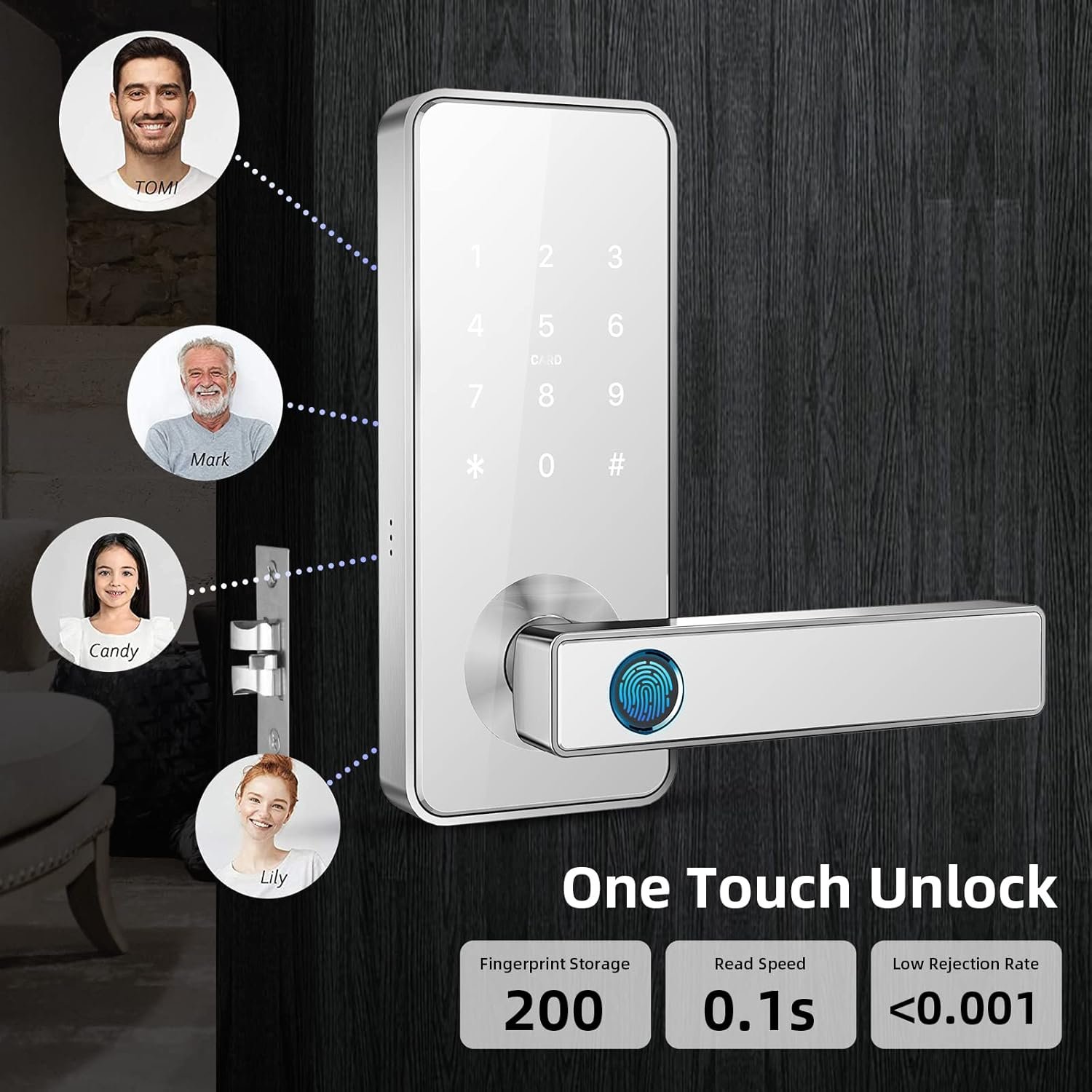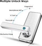 Ruveno Serrure de porte intelligente à empreinte digitale, niveau de porte d’entrée sans clé, sécurité d’accès Bluetooth APP pour la maison(blanc)