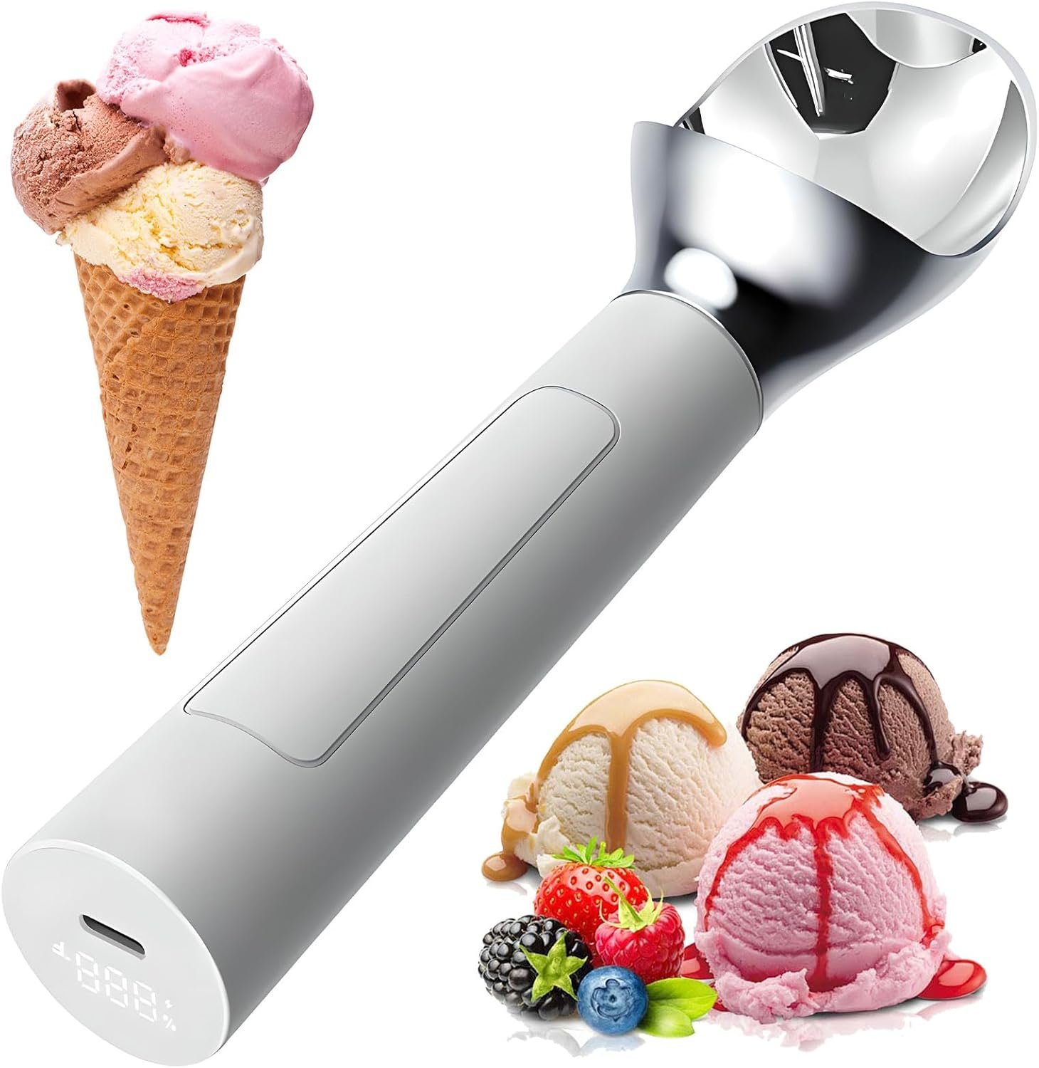 Scoop de crème glacée en chauffage électrique, scoop de crème glacée chauffée intelligente de 2 oz avec affichage numérique LED, IP67 imperméable, pour le magasin de desserts, maison, cafétéria