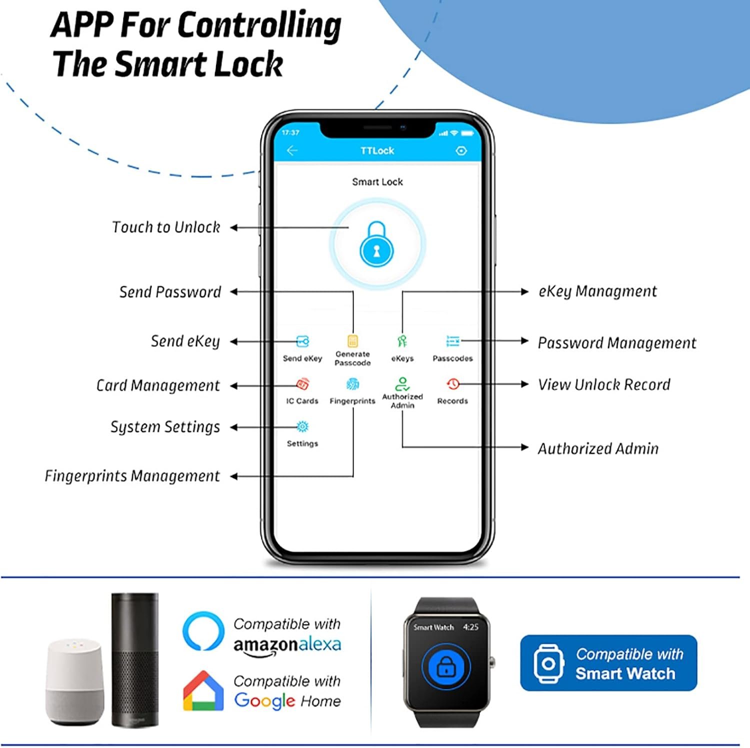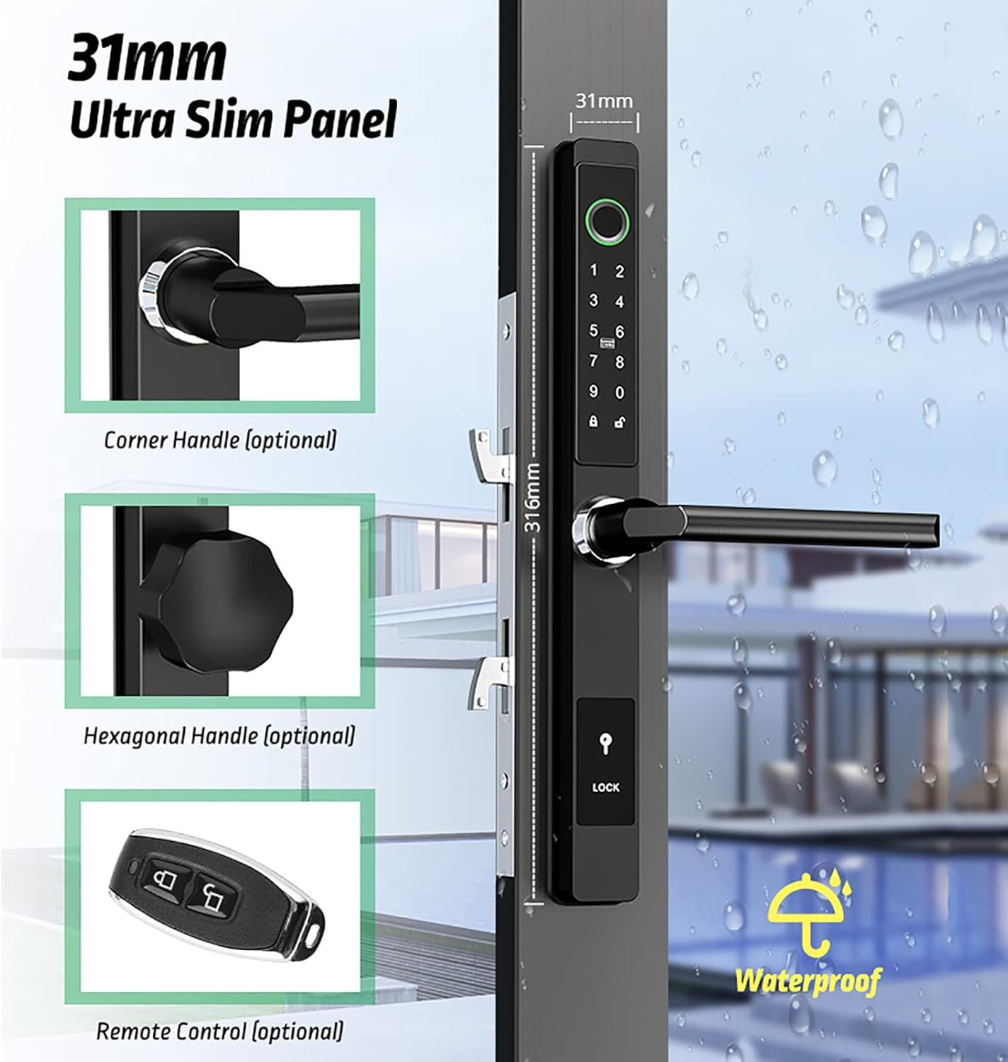 Serrure de porte intelligente, serrure sans clé à empreintes digitales, serrure étanche à clavier, fonctionne avec, appareil de maison intelligente