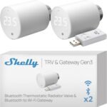Shelly Blu TRV & Shelly Blu Gateway Gen3 – Tête thermostatique connectée Bluetooth avec Passerelle Wi-FI (USB-A), Commande à Distance par app, Économies d’énergie, Écran Rotatif – Lot de 2