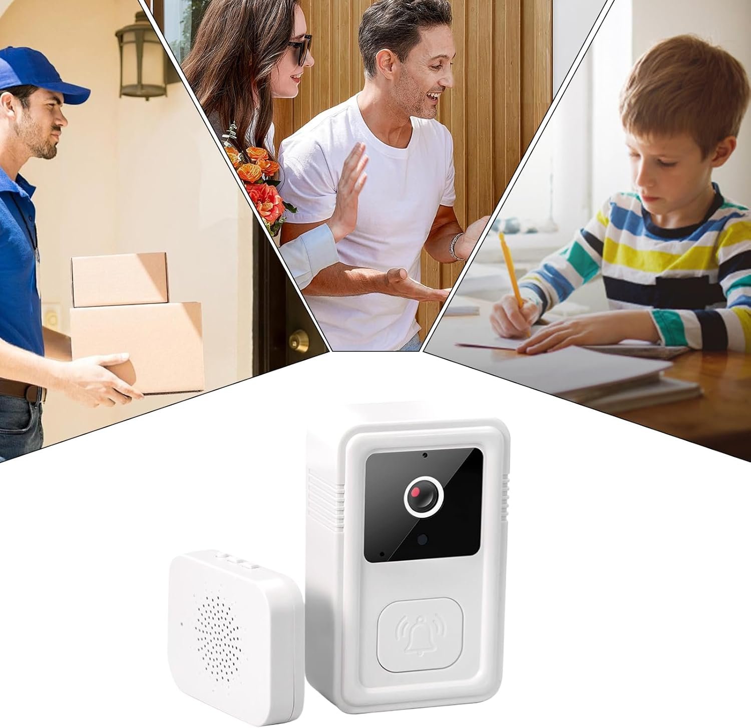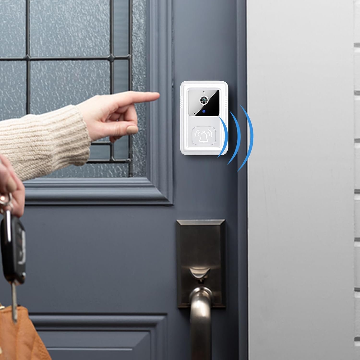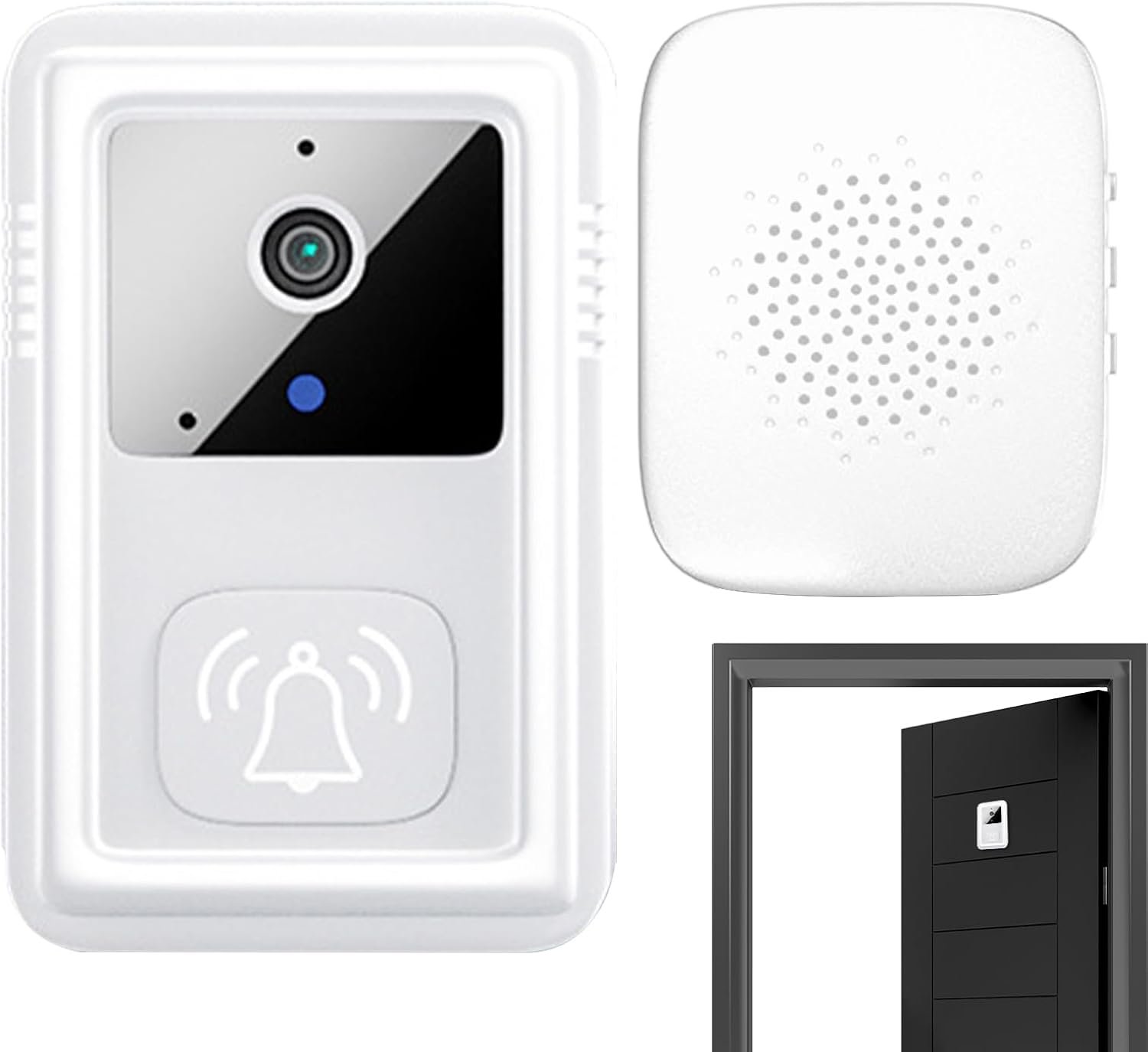 Sonnette de porte, sonnette vidéo WiFi intelligente, 8,5 x 5,3 x 2,4 cm, vision haute définition, alertes de détection de mouvement, idéale pour les locataires, les propriétaires, la sécurité