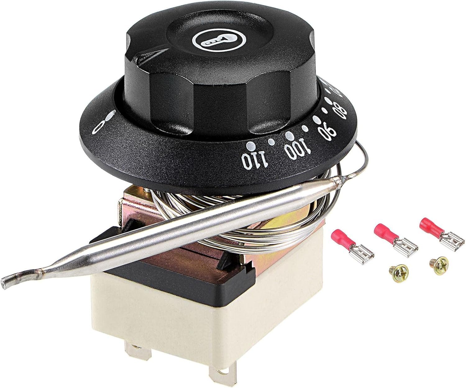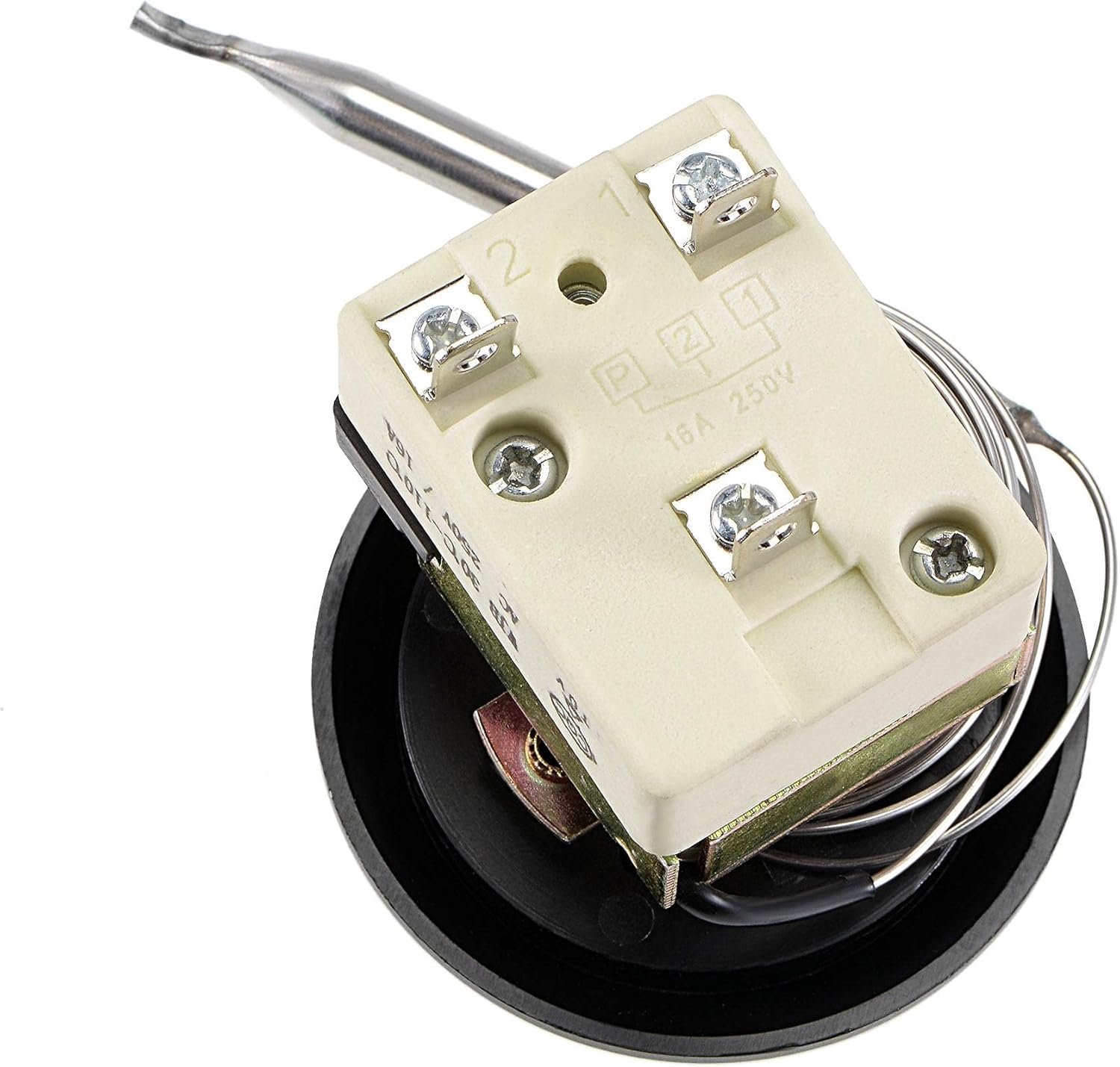 sourcing map 1NO 1NC 250V 16A 30-110C Contrôle Température Interrupteur Thermostat Capillaire pour Four Réfrigérateur Chauffage 2m avec 2 Vis&3 Bornes à Sertir