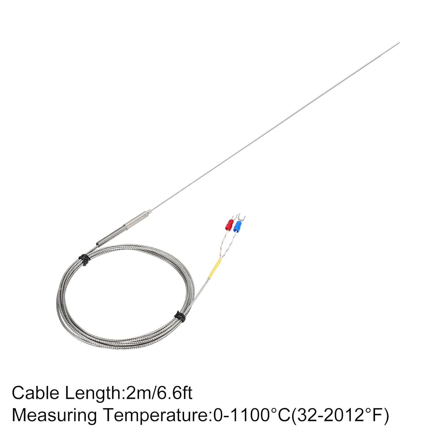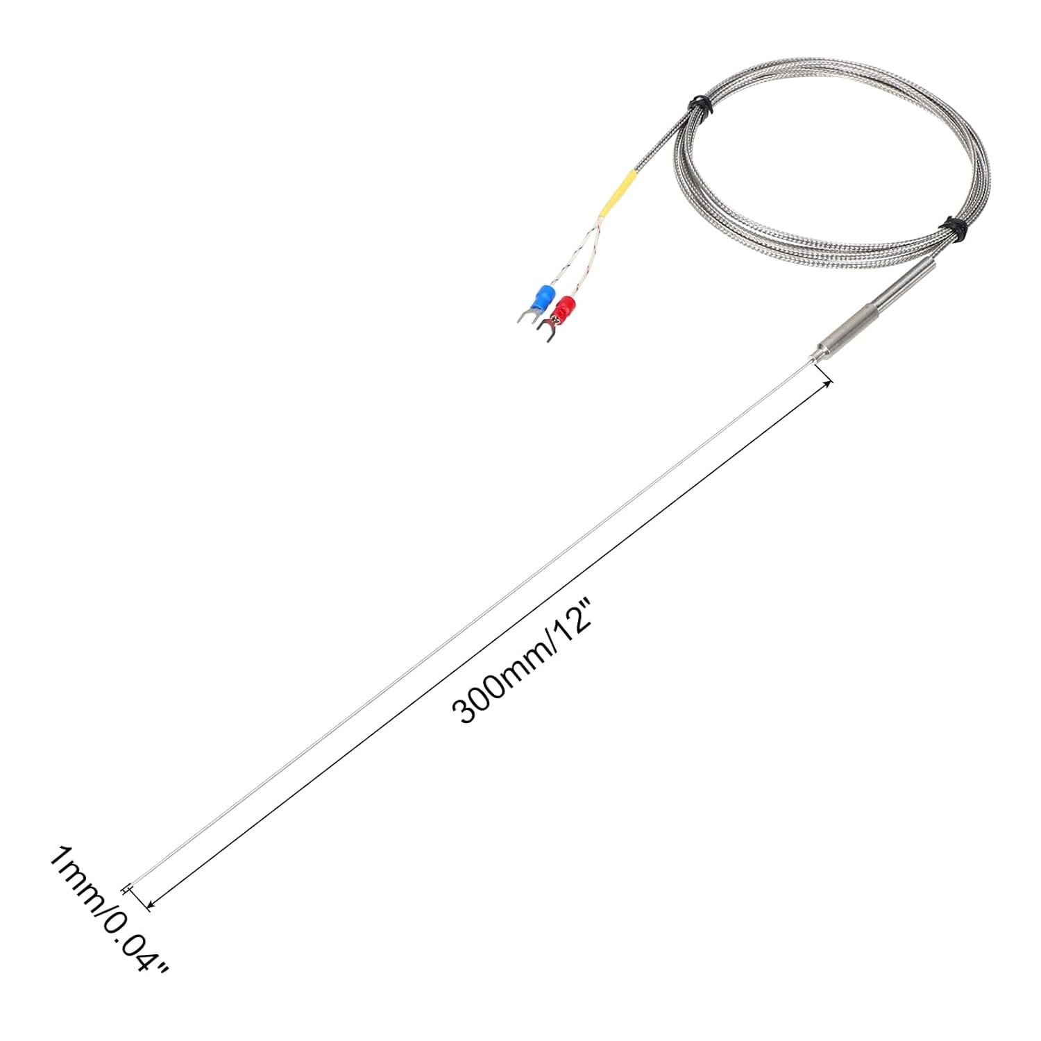 sourcing map Sonde de capteur de température thermocouple de type K 1 x 300 mm 6.8 ft fil 0 à 1100 °C (32 à 2100 °C) en acier inoxydable