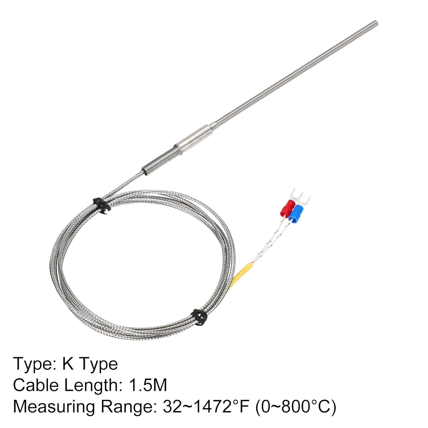 sourcing map Sonde de capteur de température thermocouple de type K 4 x 150 mm (0 à 800 °C) Régulateur de température de 1,5 m