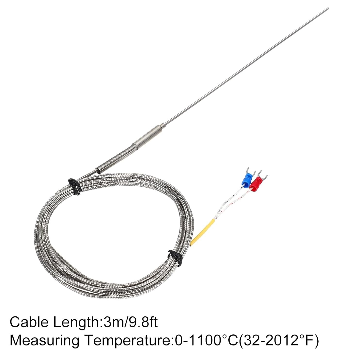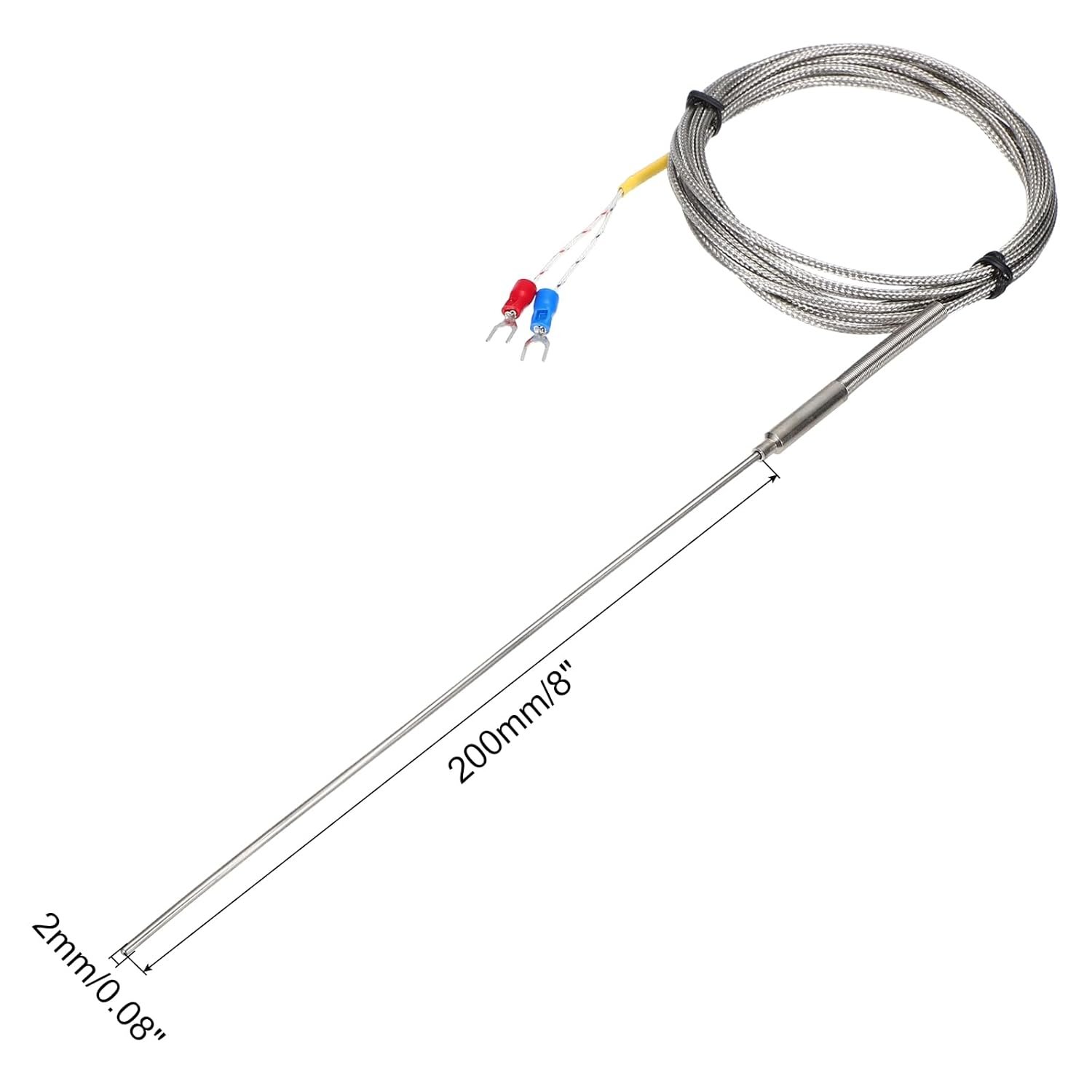 sourcing map Sonde de capteur de température thermocouple type K 2 x 200 mm 3 m fil 0 à 1100 °C en acier inoxydable
