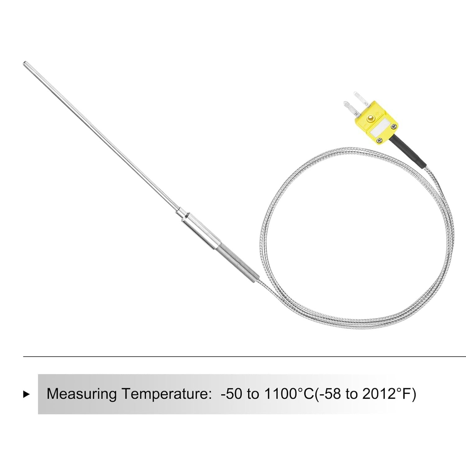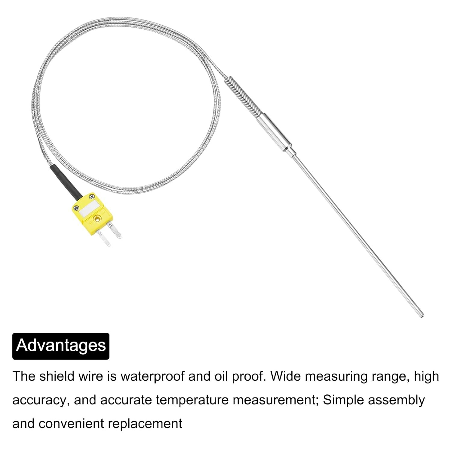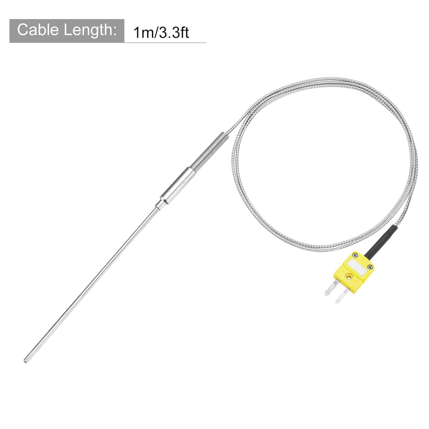 sourcing map Thermocouple de type K avec prise, sonde de capteur de température de -50 à 1100 °C, acier inoxydable, 3 x 100 mm fil de 3 m