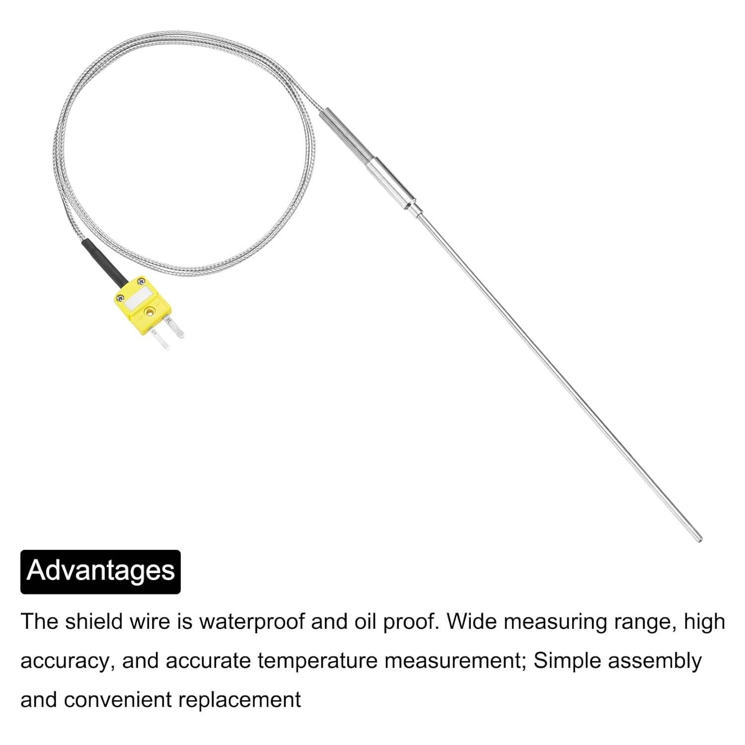 sourcing map Thermocouple de type K avec prise, sonde de capteur de température de -50 à 1100 °C, acier inoxydable, 3 x 200 mm fil de 1 m
