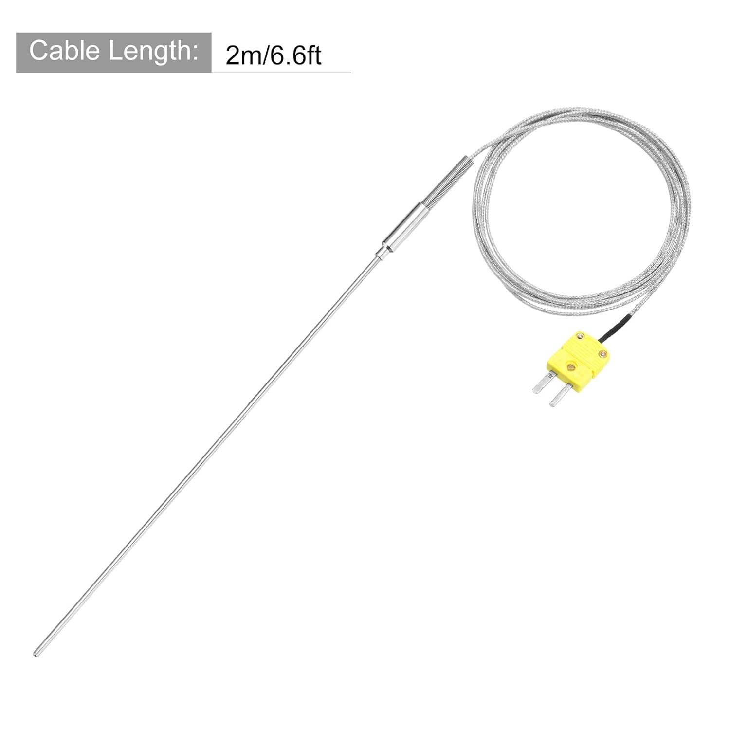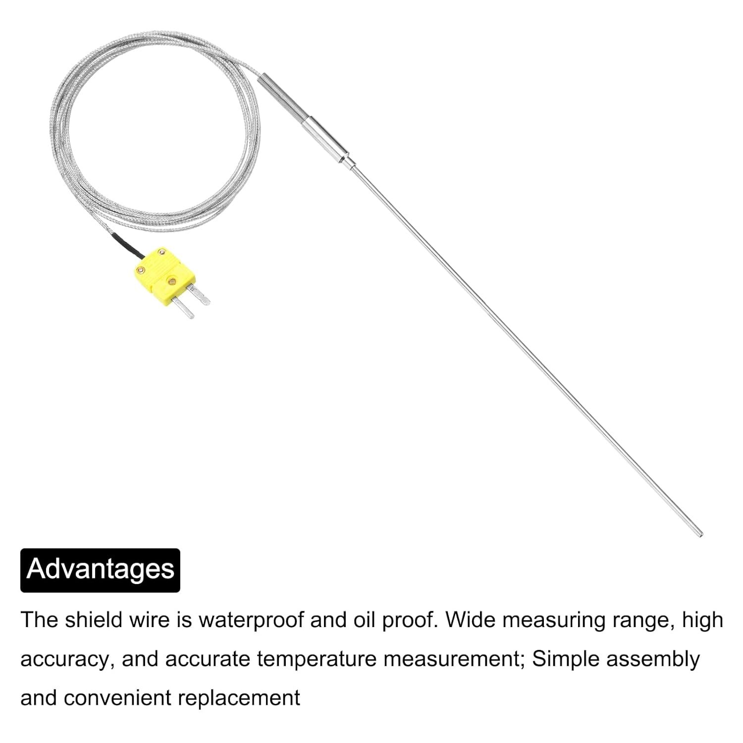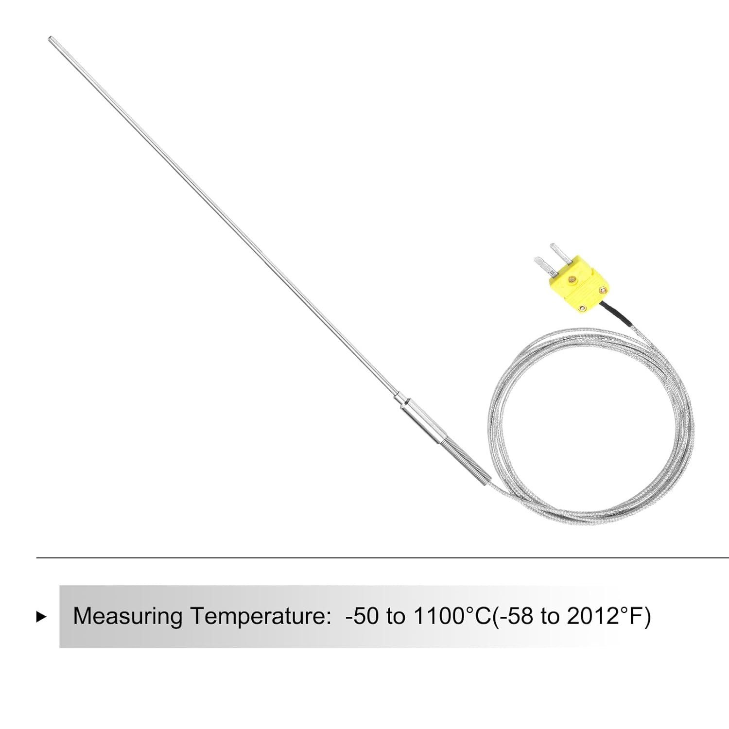 sourcing map Thermocouple de type K avec prise, sonde de capteur de température de -50 à 1100 °C, acier inoxydable, 4 fils de 300 mm