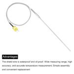 sourcing map Thermocouple de type K avec prise, sonde de capteur de température de -50 à 1100 °C en acier inoxydable, 2,5 x 250 mm, câble de 1 m