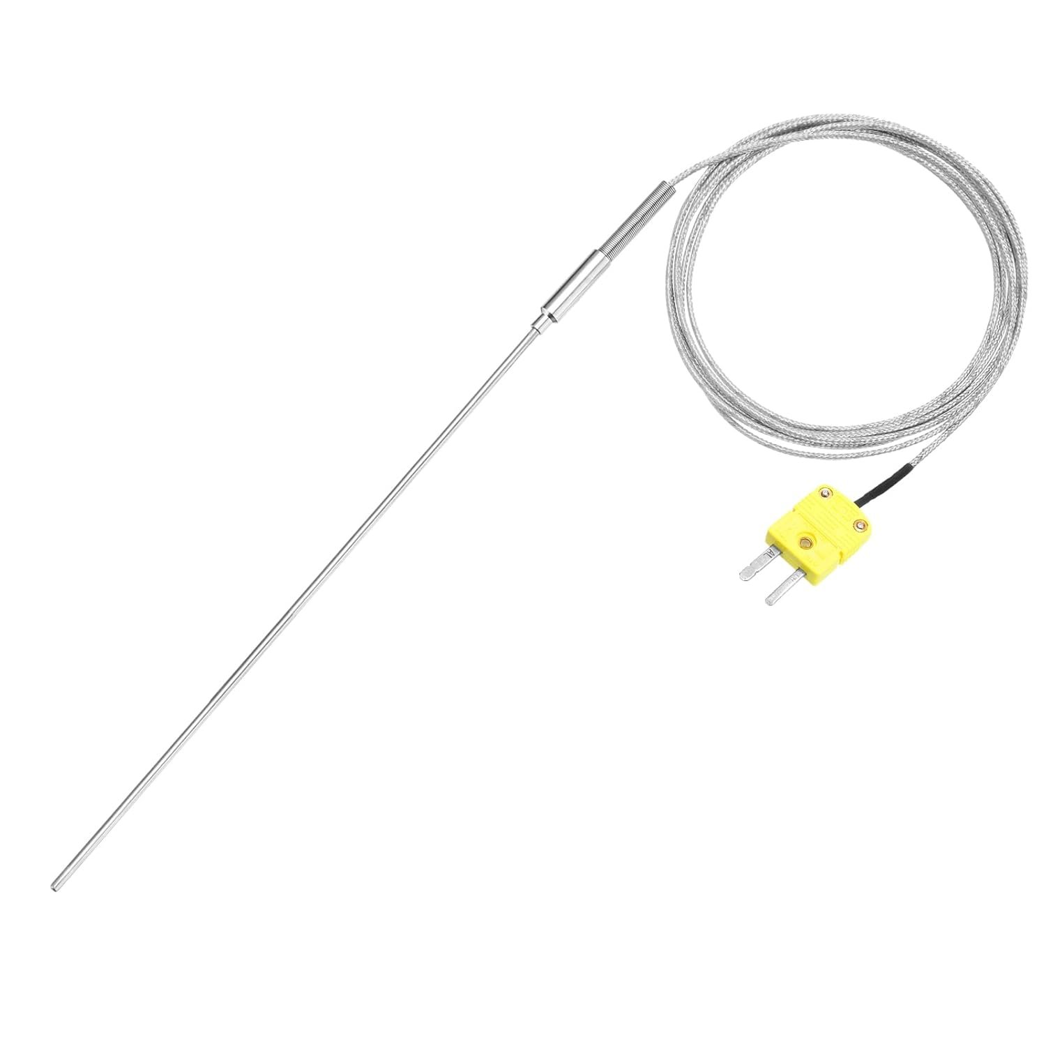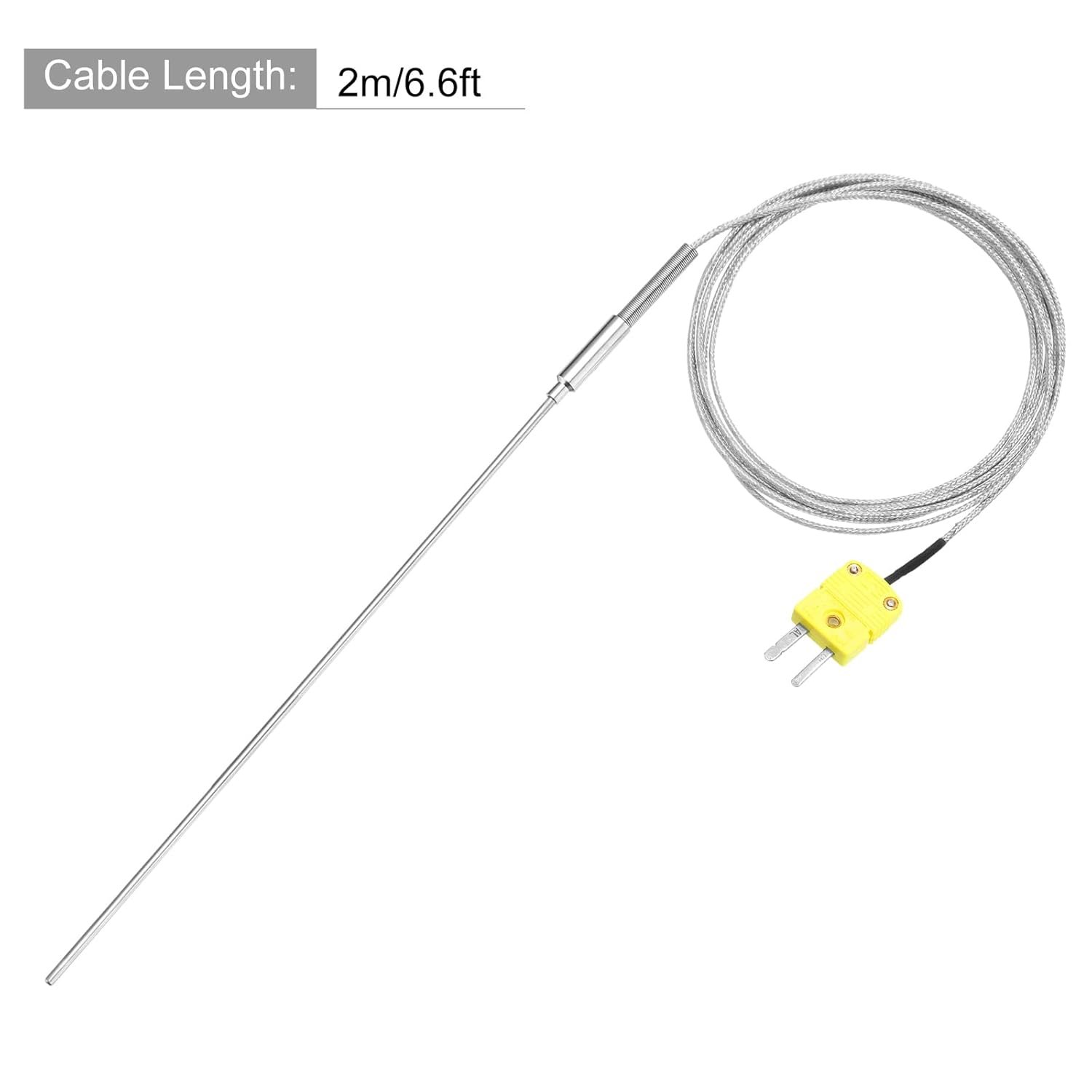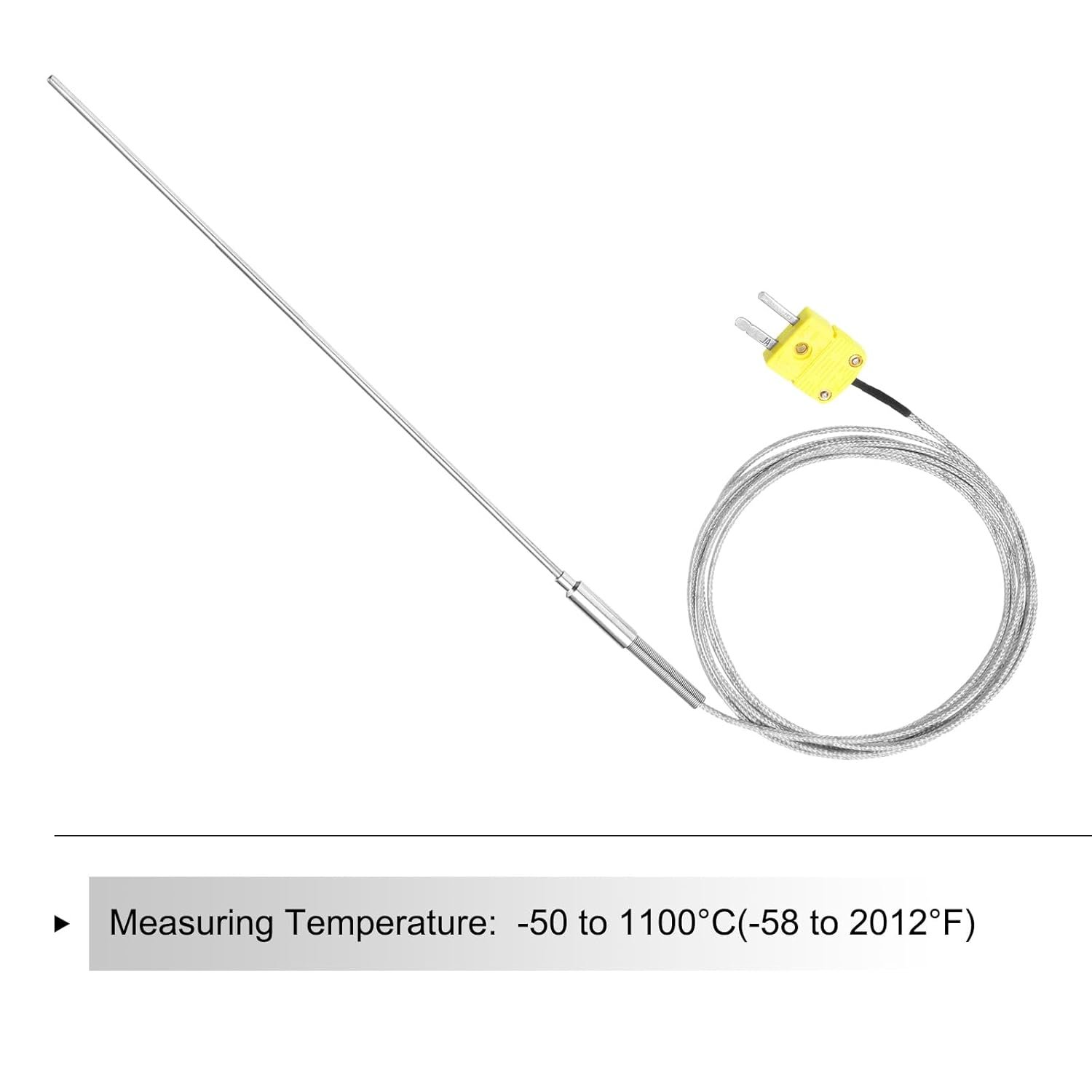 sourcing map Thermocouple de type K avec prise, sonde de capteur de température de -50 à 1100 °C en acier inoxydable, 3,2 x 300 mm, câble de 2 m