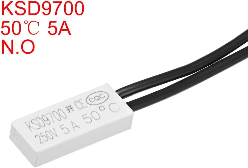sourcing map Thermostat KSD9700, Interrupteur de température normalement Ouvert 50 ℃, régulateur de température à Interrupteur Thermique N.O 5A 2 pièces