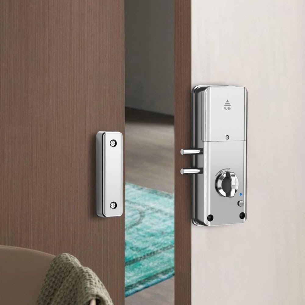 SPORTARC Serrure de porte invisible Tuya, serrure électronique intelligente, carte d’application/déverrouillage de l’application, serrure de porte invisible (argenté)