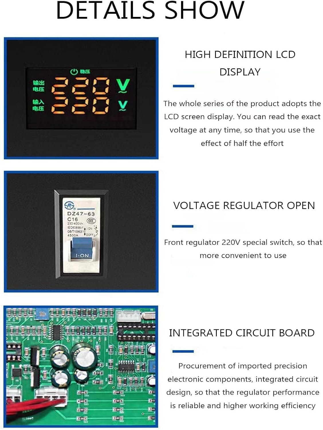 Stabilisateur De Tension, Stabilisateur De Courant Alternatif Monophasé for Alimentation Domestique, Petits Appareils Électroménagers, Dissipation Thermique Efficace, Noir(2KVA)