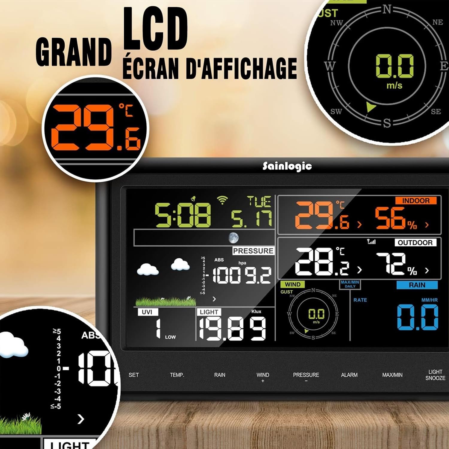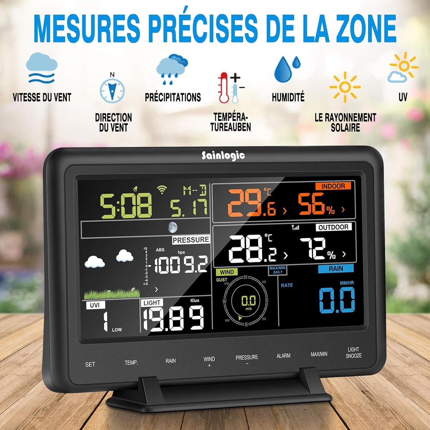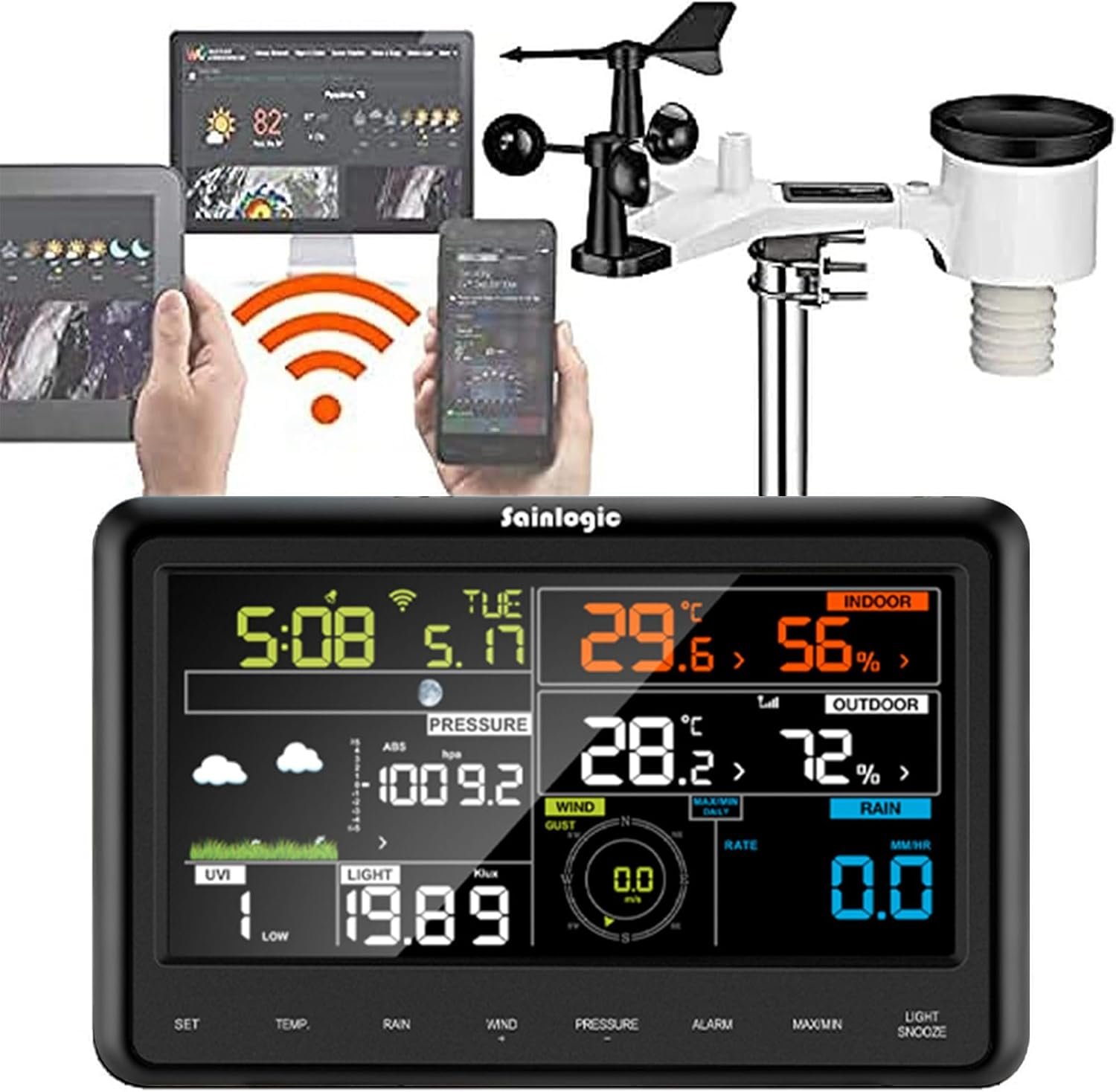 Station Météo Professionnelle WLAN – Station Météo Sans Fil WiFi Internet Avec Capteur Extérieur, Pluviomètre, Prévisions Météo, Anémomètre, Écran Couleur, Wunderground