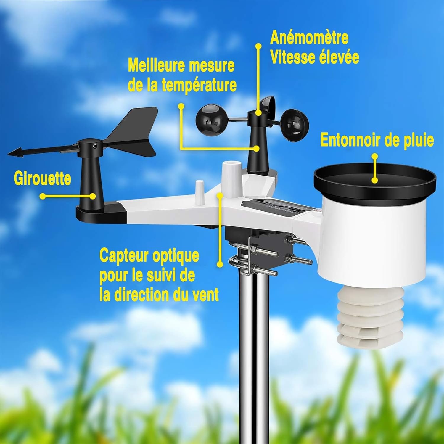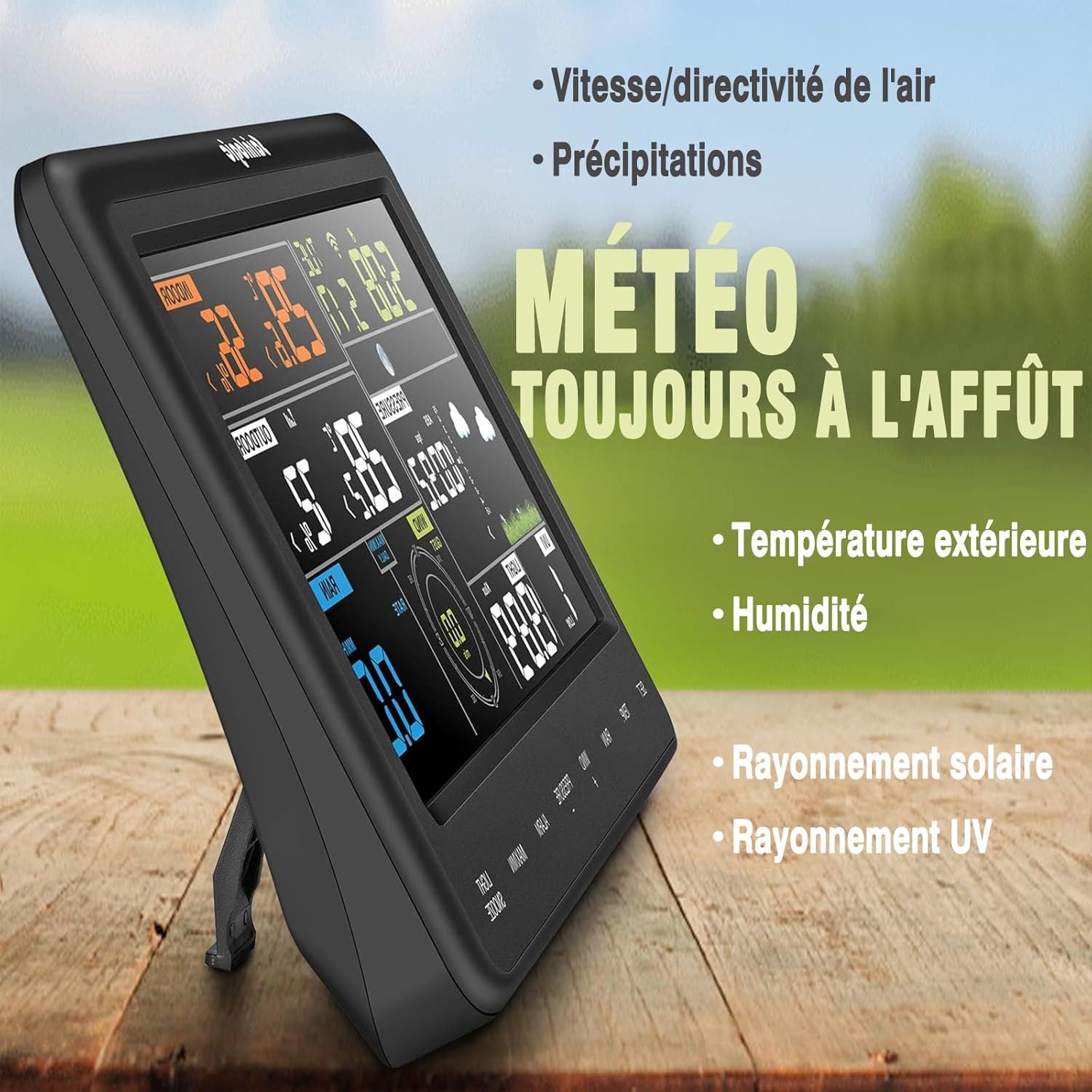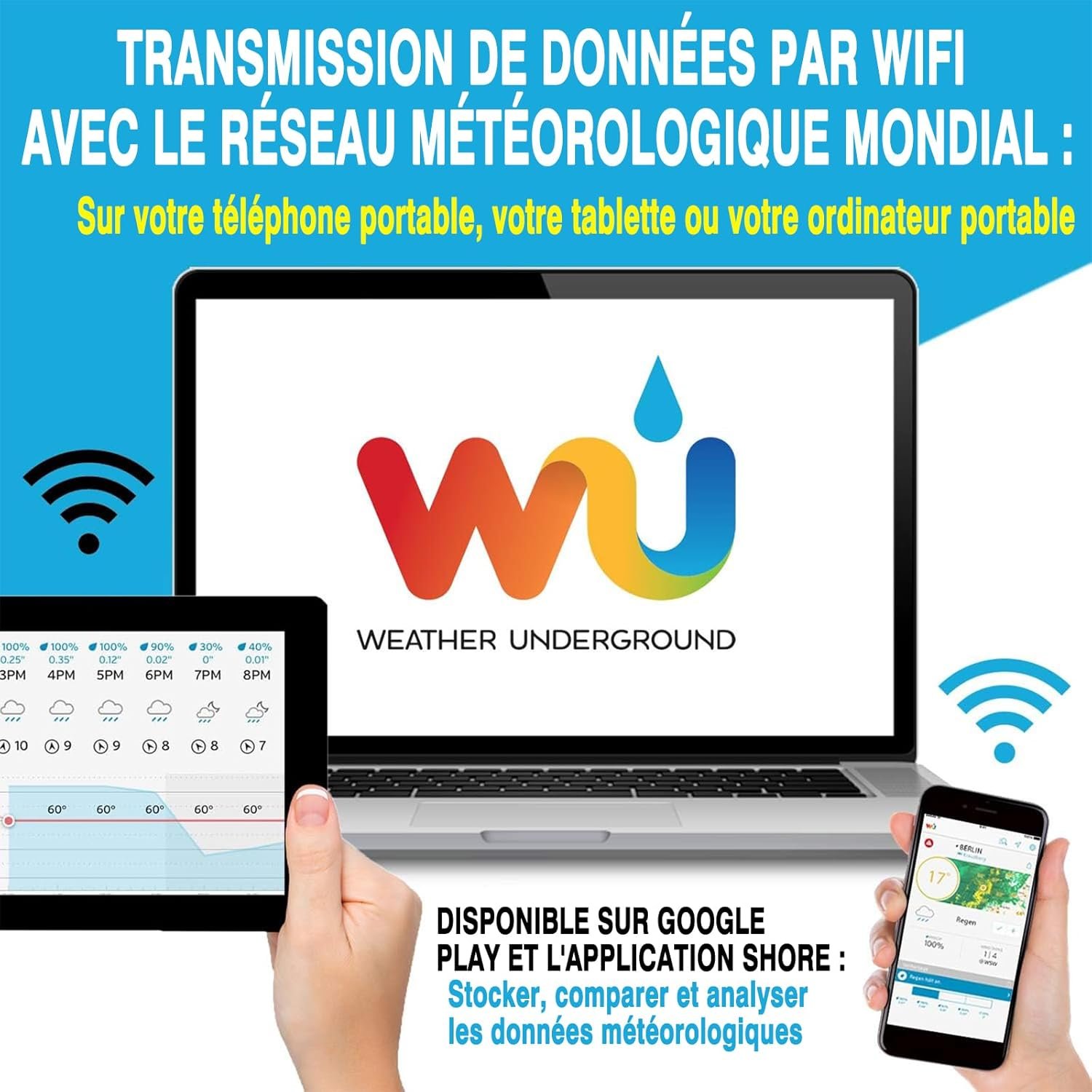 Station Météo Professionnelle WLAN – Station Météo Sans Fil WiFi Internet Avec Capteur Extérieur, Pluviomètre, Prévisions Météo, Anémomètre, Écran Couleur, Wunderground
