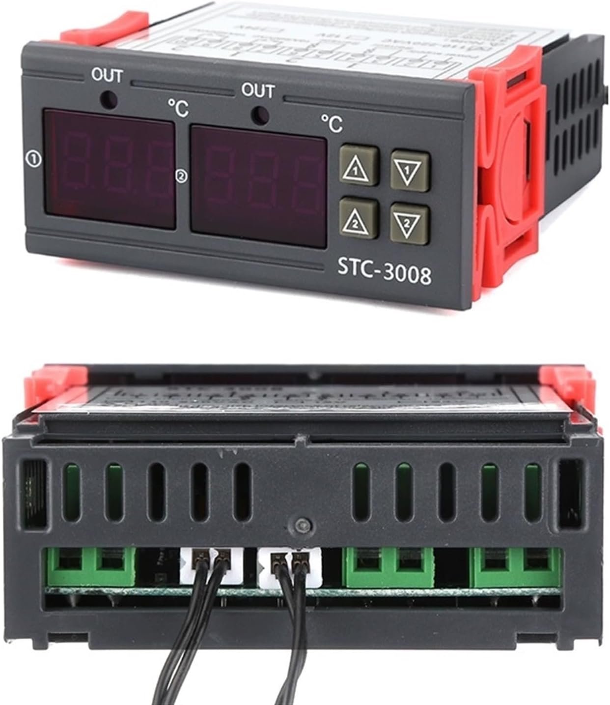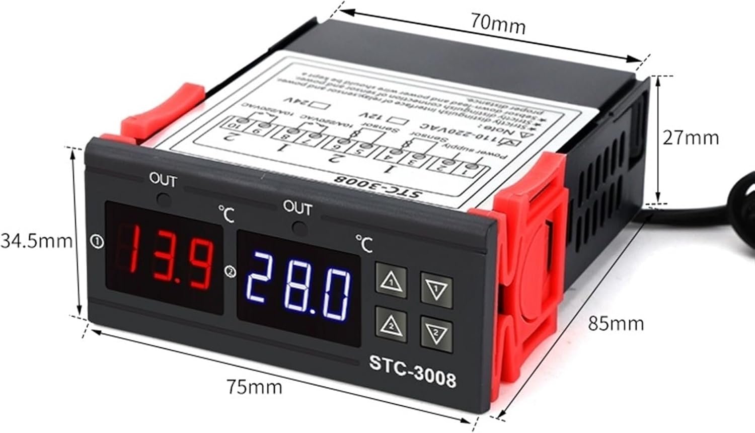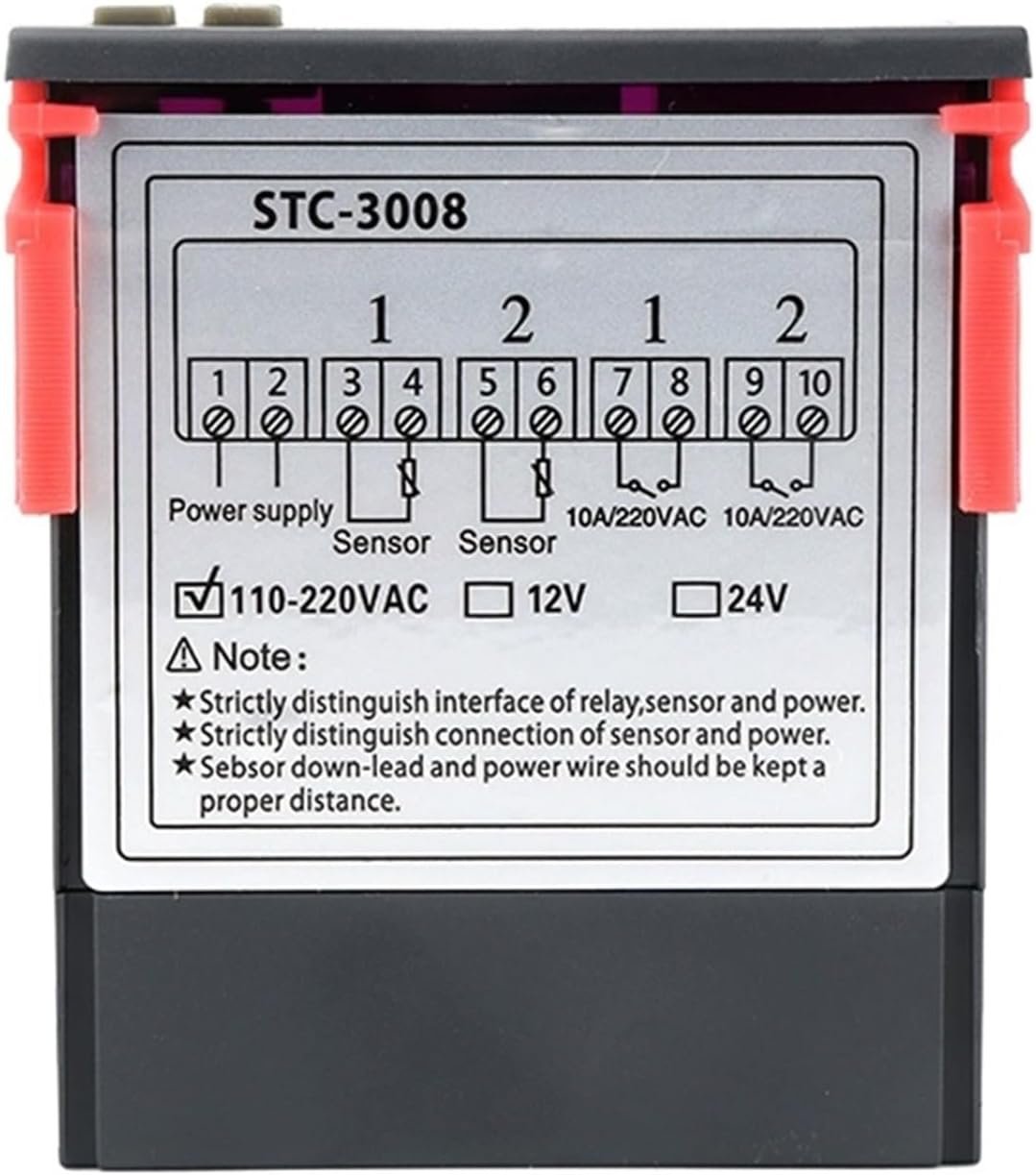 STC-3008 double régulateur de température numérique deux relais sortie Thermostat de chauffage avec sonde 12 V 24 V 220 V chaleur froide (Color : DC24V)