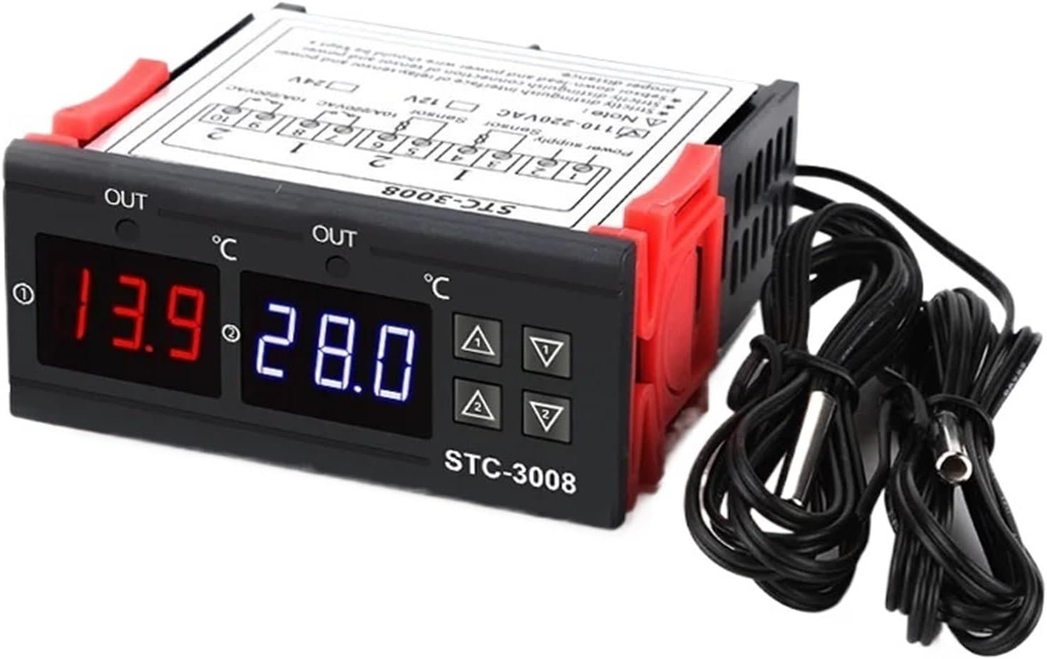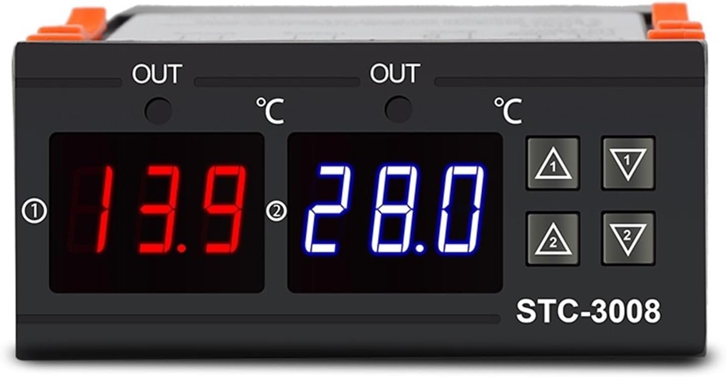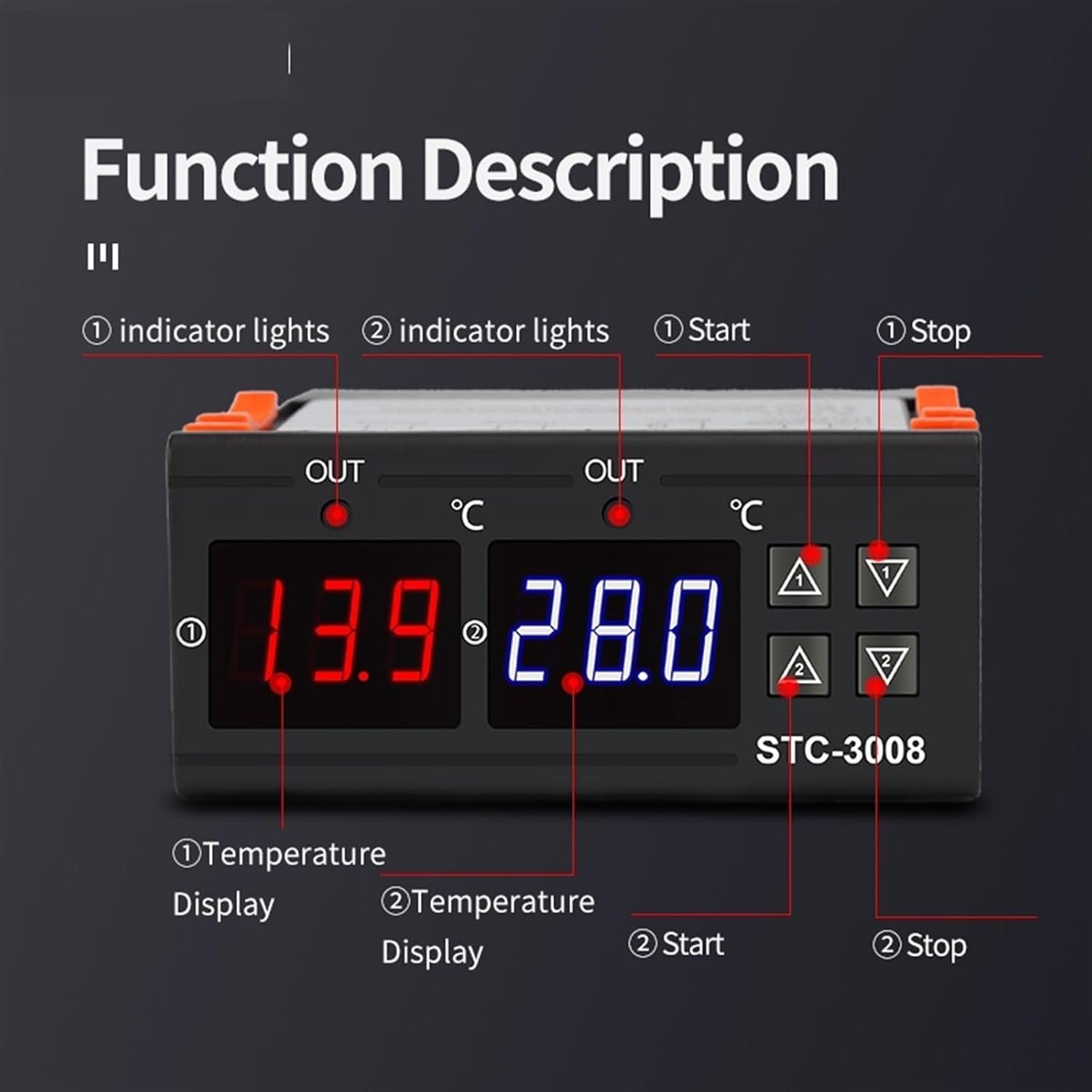 STC-3008 double régulateur de température numérique deux relais sortie Thermostat de chauffage avec sonde 12 V 24 V 220 V chaleur froide (Color : DC24V)