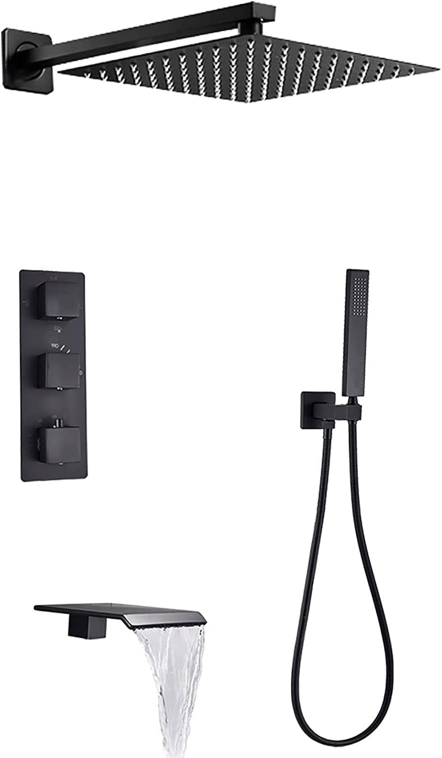 Système de Douche thermostatique avec Baignoire en Cascade Berceau de Douche Noir Ensemble de robinets muraux