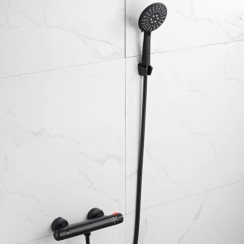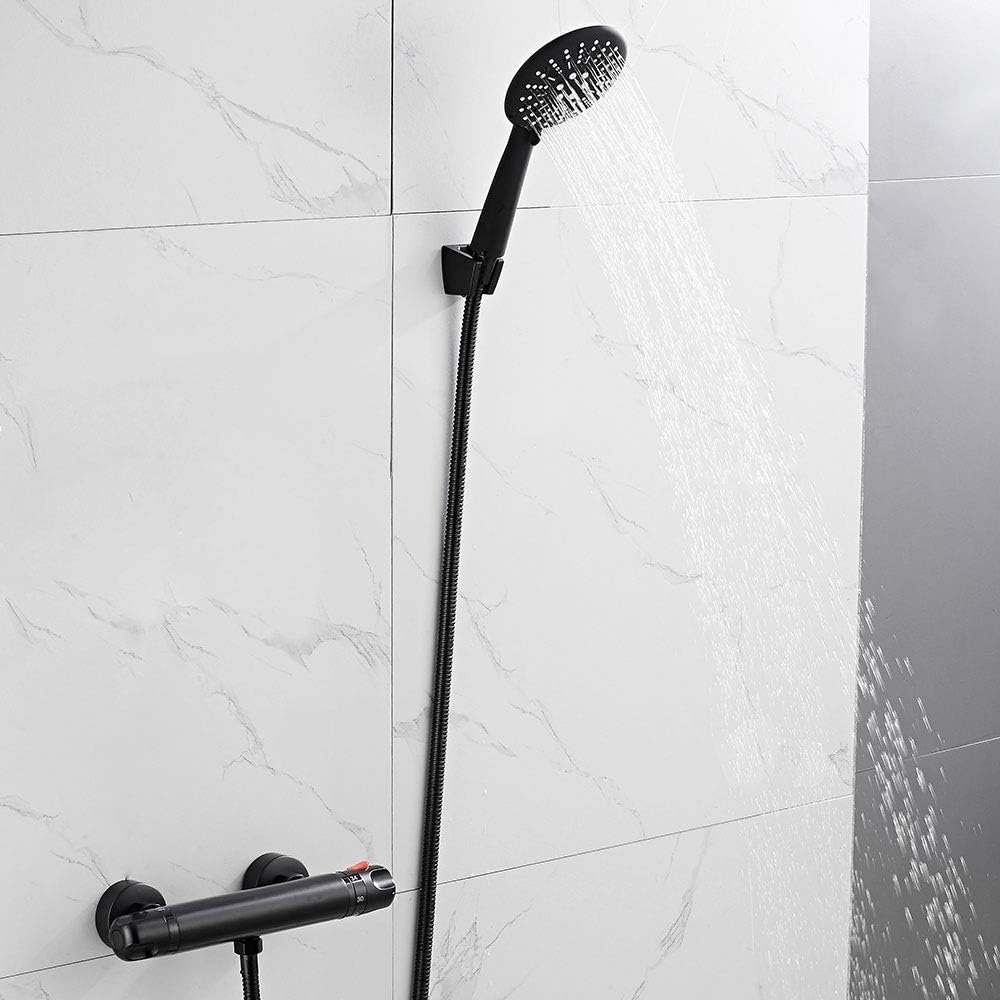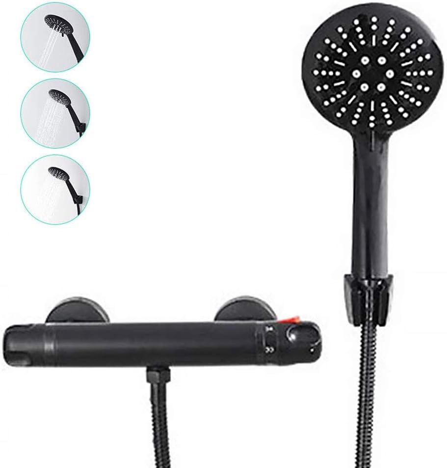 Système de douche thermostatique noir avec mitigeur de baignoire, pommeau de douche à main curseur et tuyau anti-brûlure, robinet mural en laiton avec bouton de sécurité à 38 °C