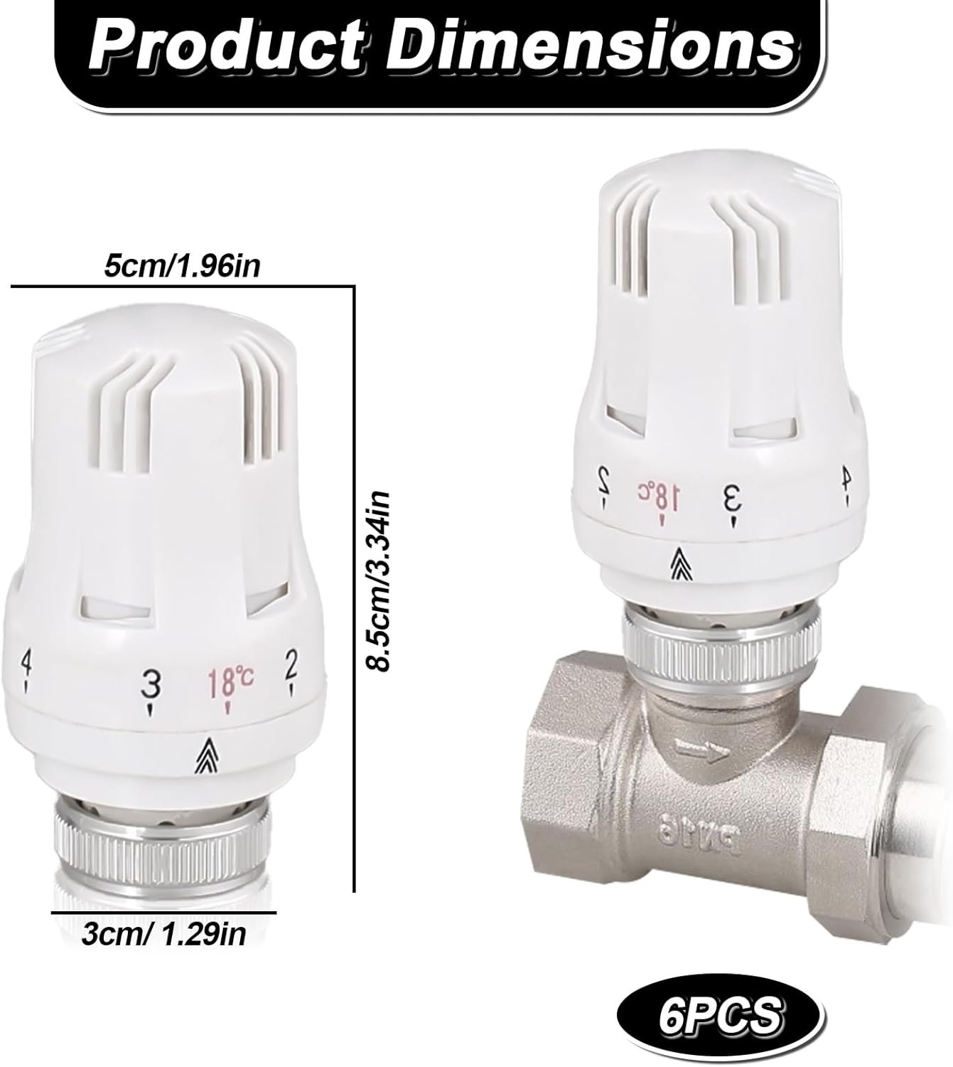 Tete Thermostatique Radiateur, 6 Pièces Tête de Vanne de Radiateur, Robinet Thermostatique Radiateur, M30 X 1,5 Tête de Thermostat, Tête de Radiateur pour Le Bureau et La Maison(A)