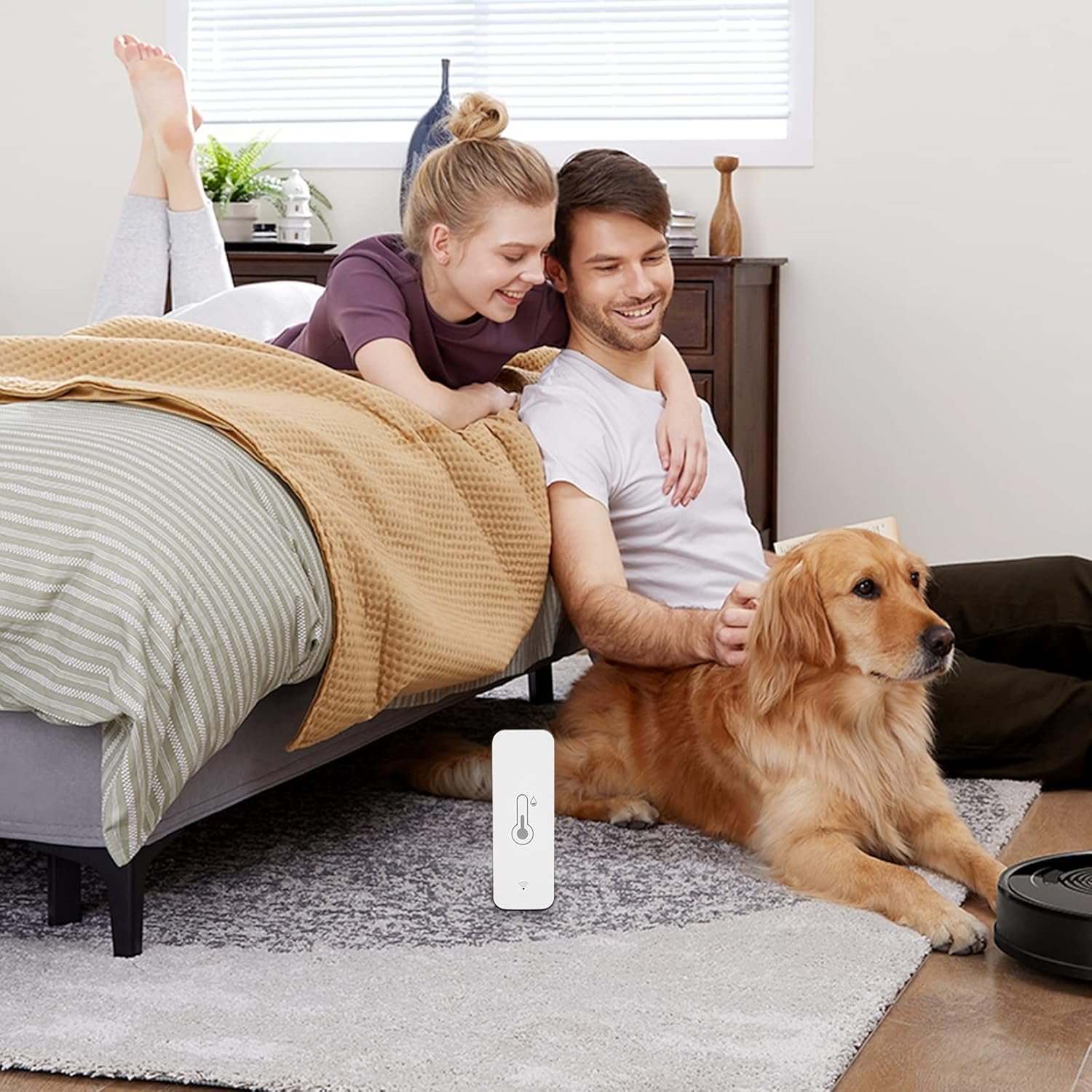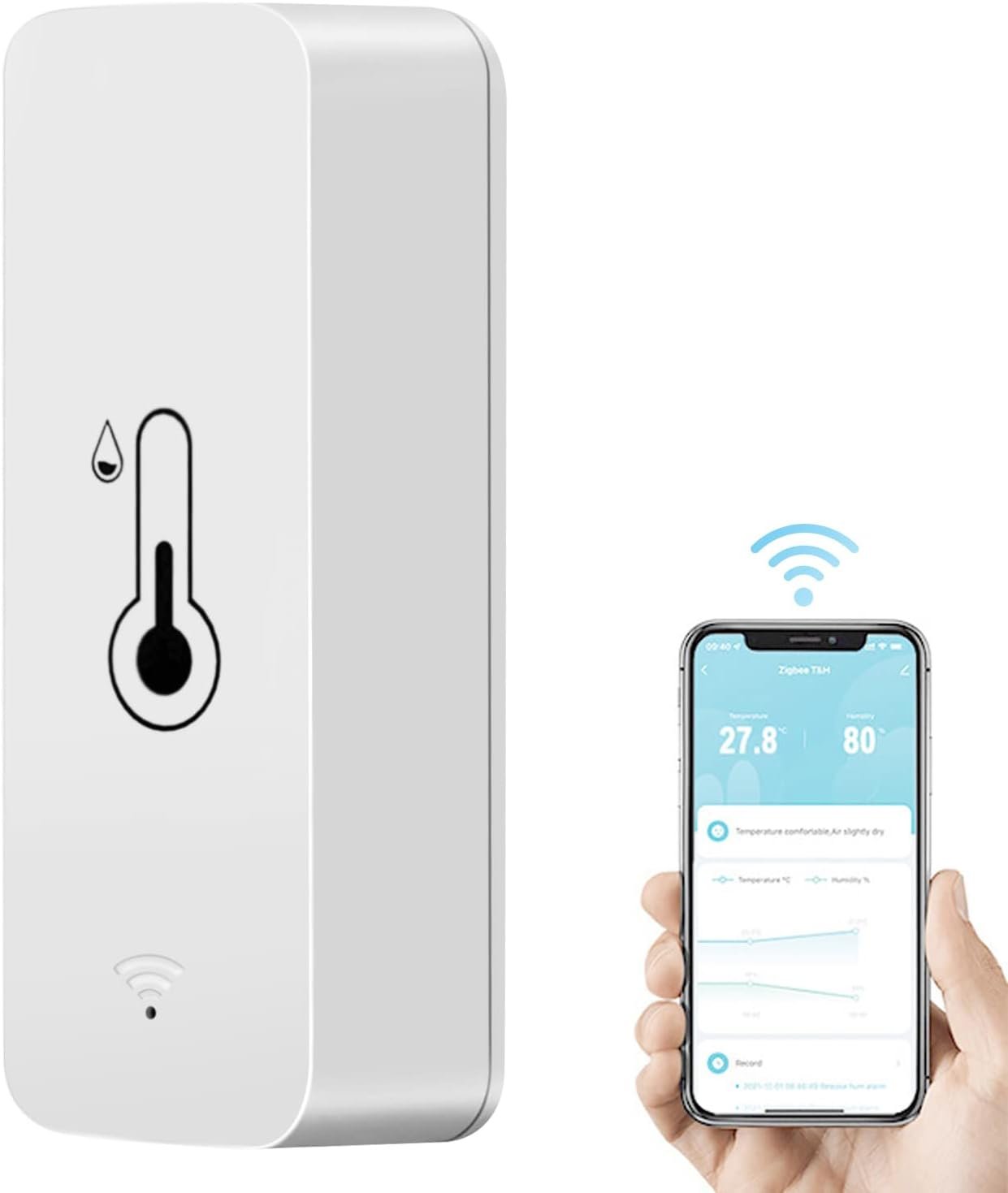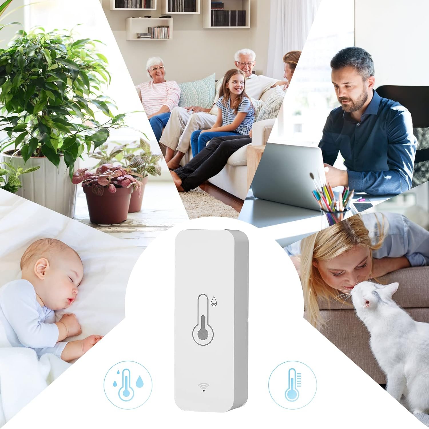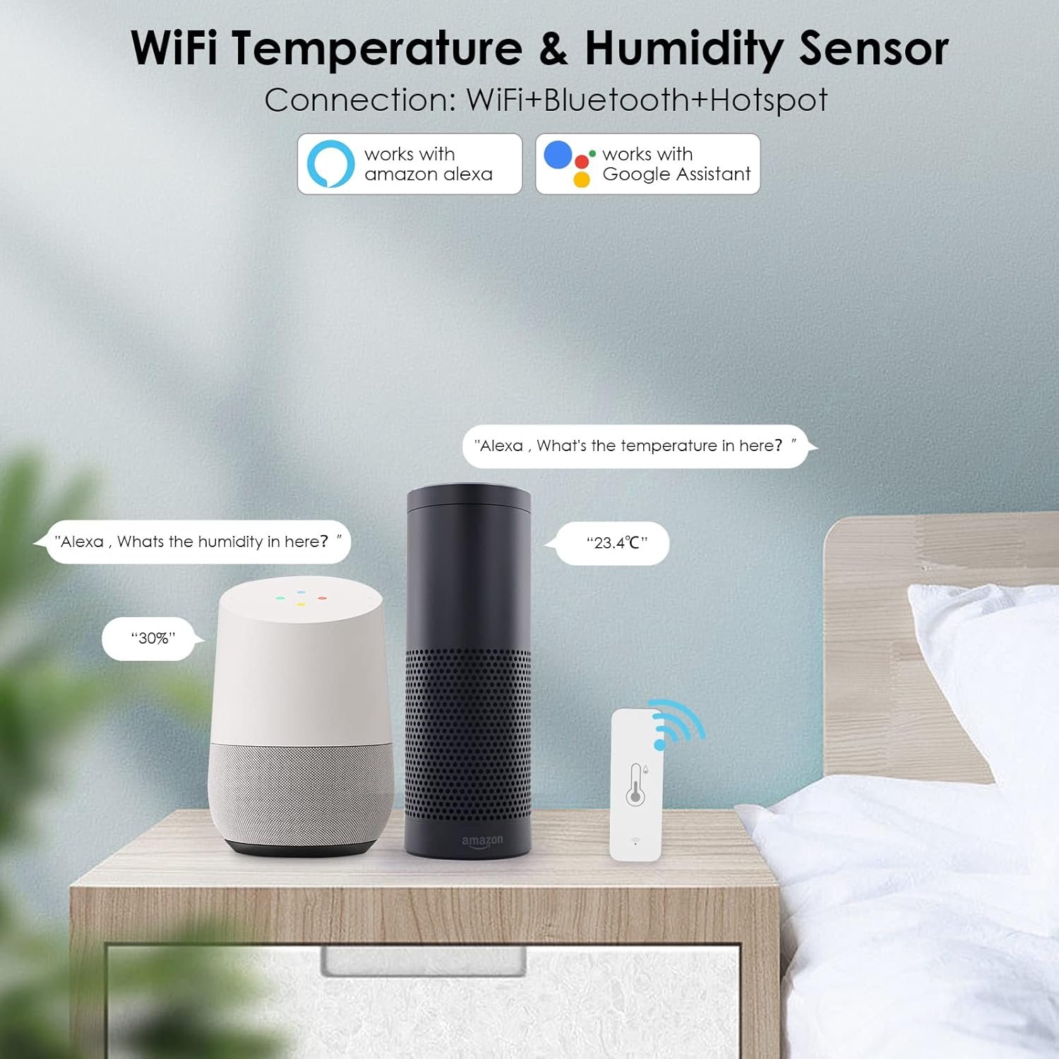 Thermometre Hygrometre Interieur WiFi, Capteur de Température et d’humidité Intérieure sans Fil Intelligent pour Moniteur à Distance et Alarme avec Application Tuya, Compatible avec Alexa