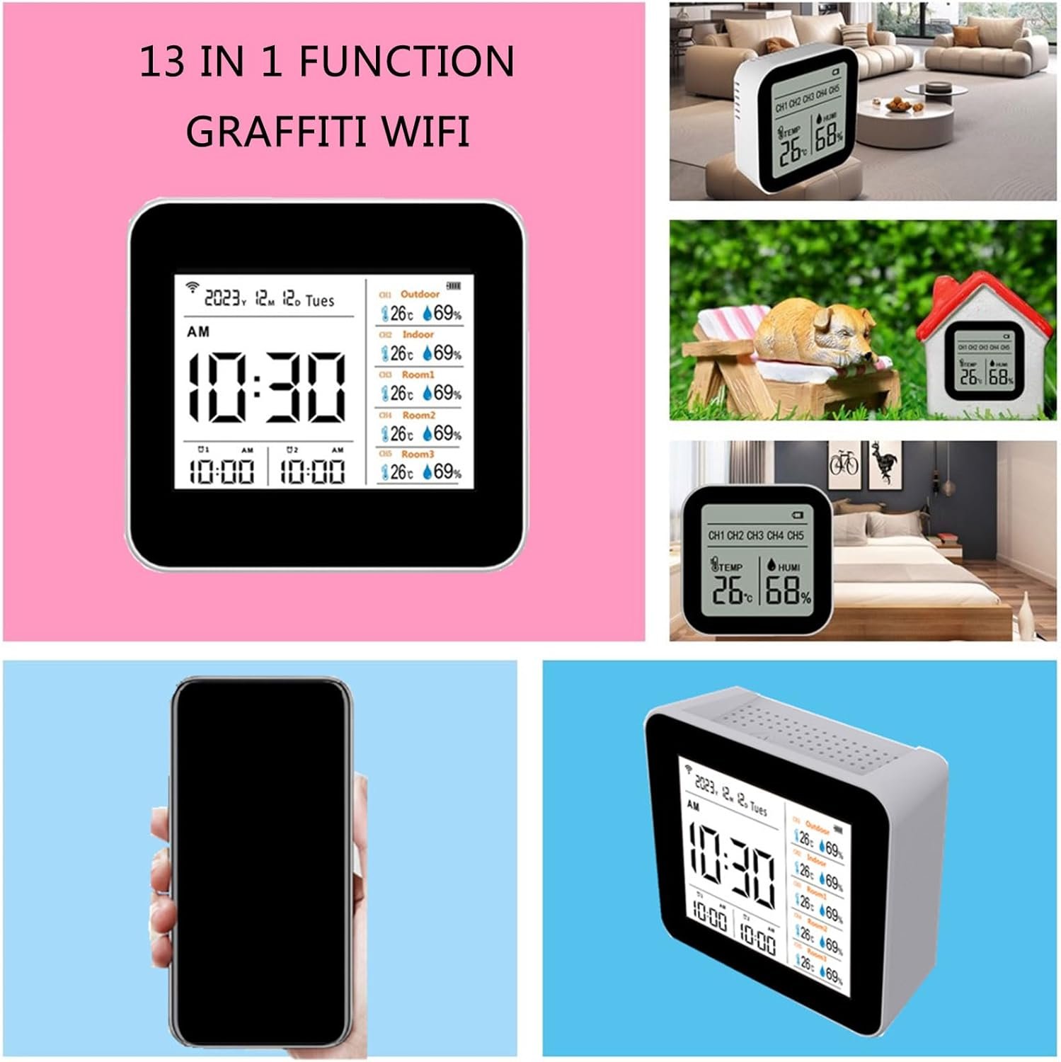 Be the first to review “Thermomètre Hygromètre Météo WiFi Écran 2.8 Pouces Horloge Table Alarme Calendrier Testeur Multifonction Pour L’extérieur L’intérieur”
