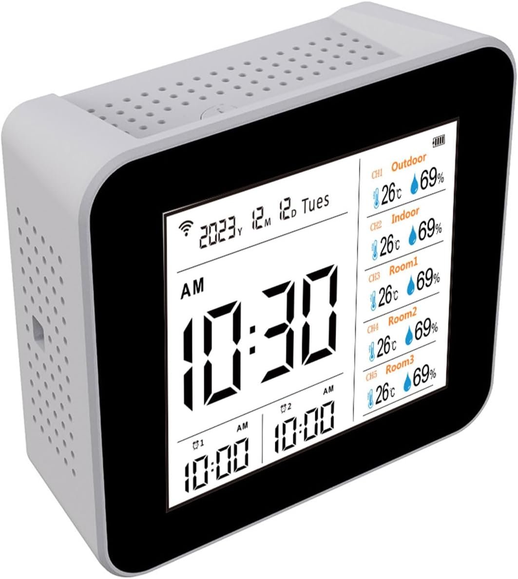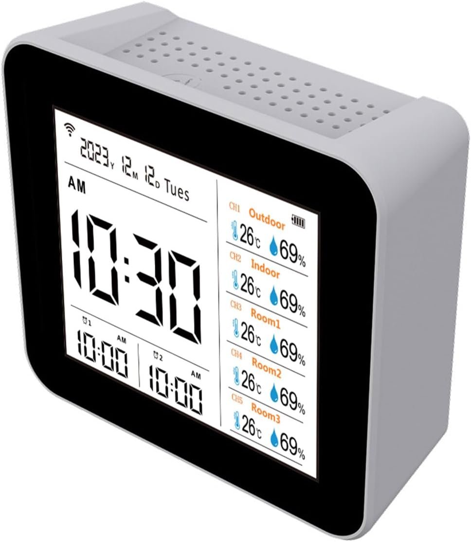 Thermomètre Hygromètre Météo WiFi Écran 2.8 Pouces Horloge Table Alarme Calendrier Testeur Multifonction Pour L’extérieur L’intérieur