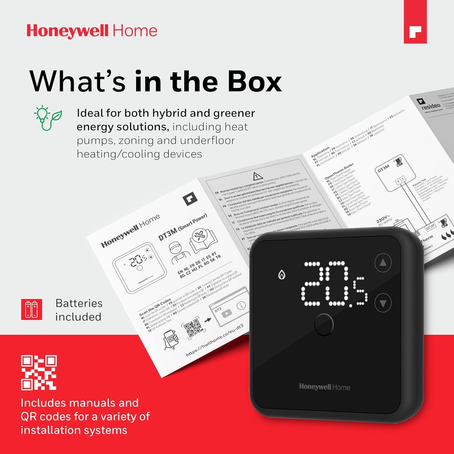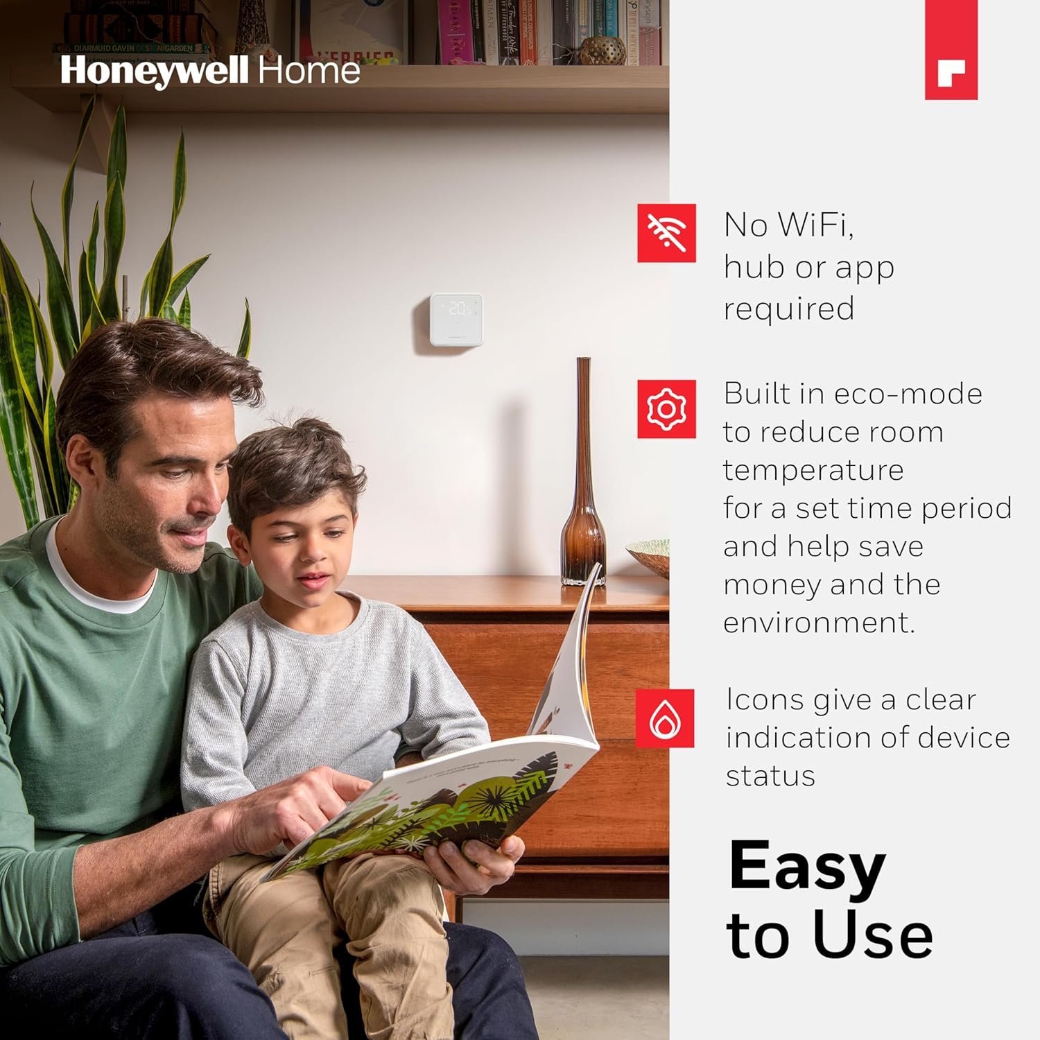 Thermostat d’ambiance Honeywell Home, écran LED facile à lire et économe en énergie, filaire, blanc