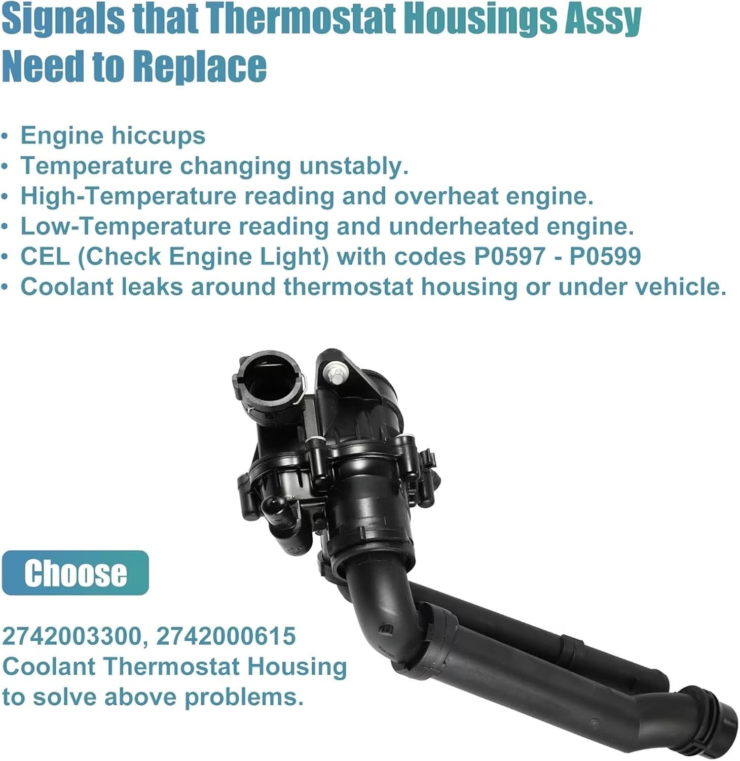 Thermostat de contrôle de température de voiture – Couvercle du boîtier du liquide de refroidissement du moteur pour 2742000615 2742003300 27420000015 1078212 21200HG00C – Thermostat de