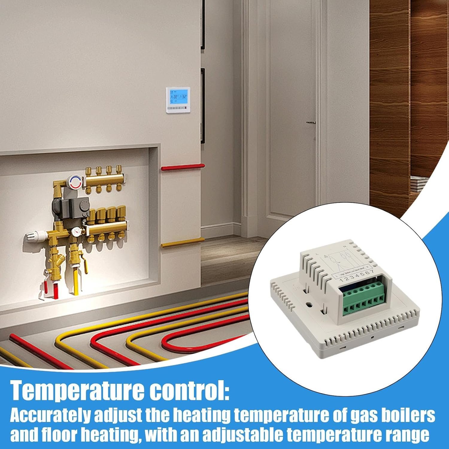 Thermostat de maison, contrôleur de chauffage au sol, écran d’affichage LCD, contrôle de température précis, conception d’installation facile, salon de la chaudière