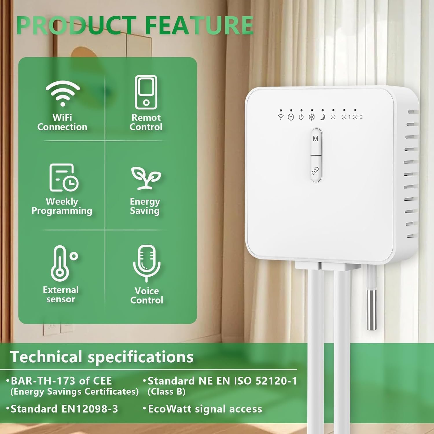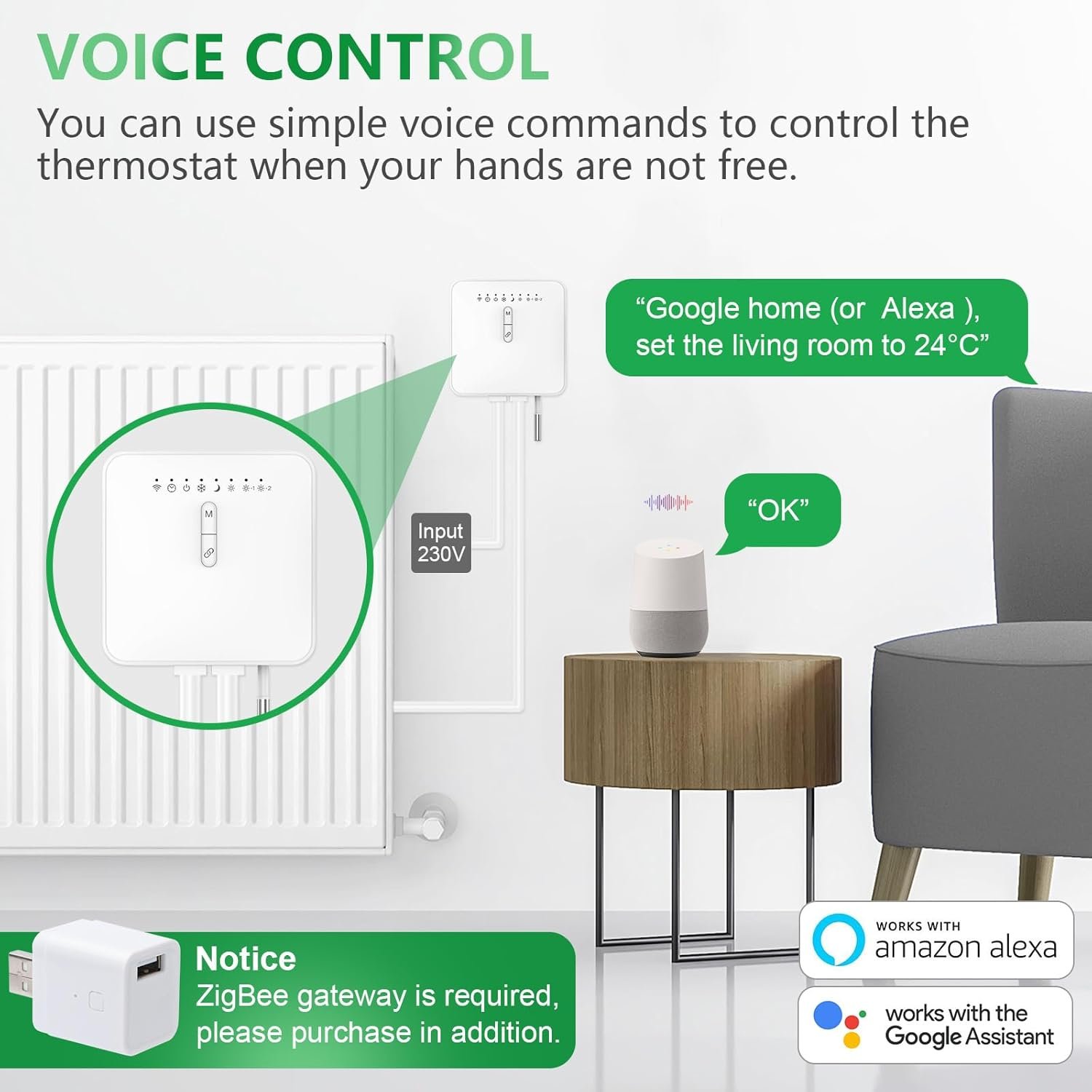 Thermostat de radiateur électrique 1311Z, Thermostat TUYA Zigbee à Fil Pilote AC230V Compatible avec Alexa Echo/Google Home, hub Tuya Zigbee requis