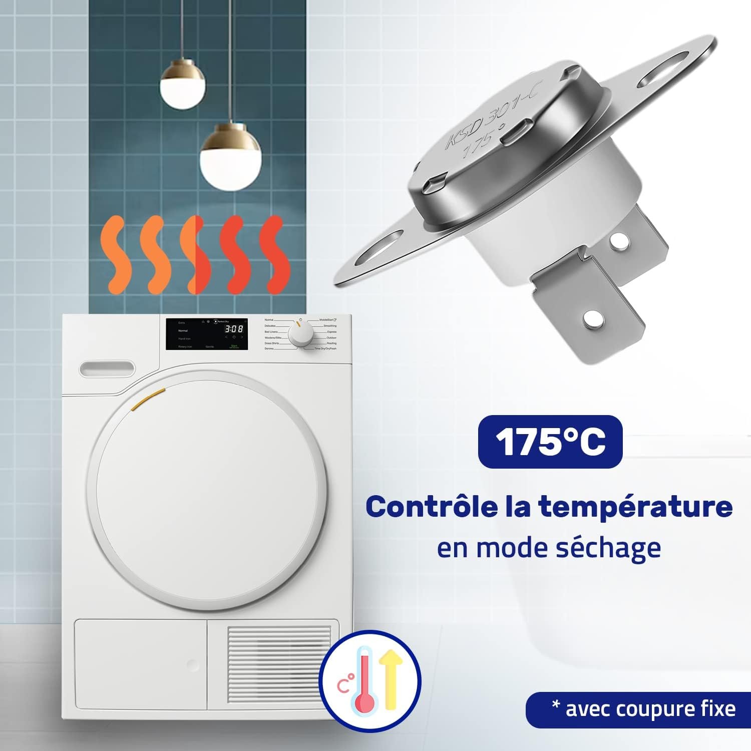 Thermostat Seche Linge 5126720 5432490 5432491 pour Miele Limiteur de Température 175°C NC Fastons Horizontaux 6,3 mm Garantie de 10 Ans – MONTERAL