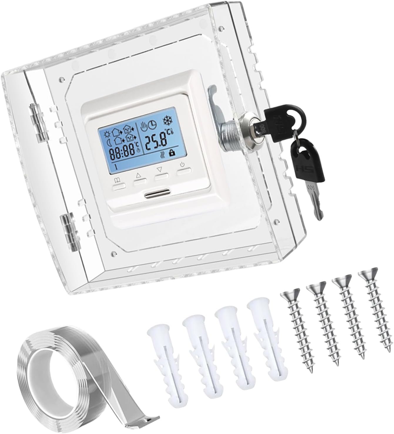 Thermostat Security Lock Box avec jeu de clés Clear Covers Guard pour unités murales Protège contre l’accès non autorisé