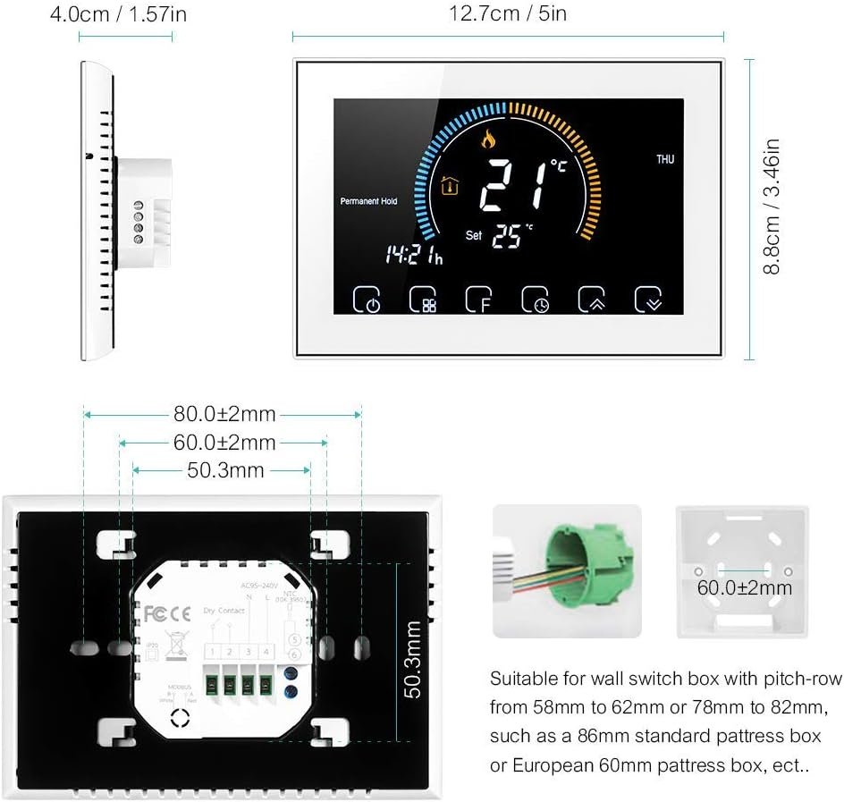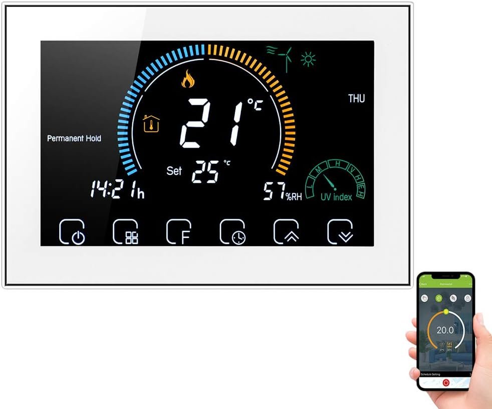 Be the first to review “Thermostat WiFi pour chaudière à gaz – Contrôle de l’application vocale/LCD rétro-éclairé Affichage de l’humidité et UV, thermostat programmable compatible avec Alexa Google Home” Cancel reply
