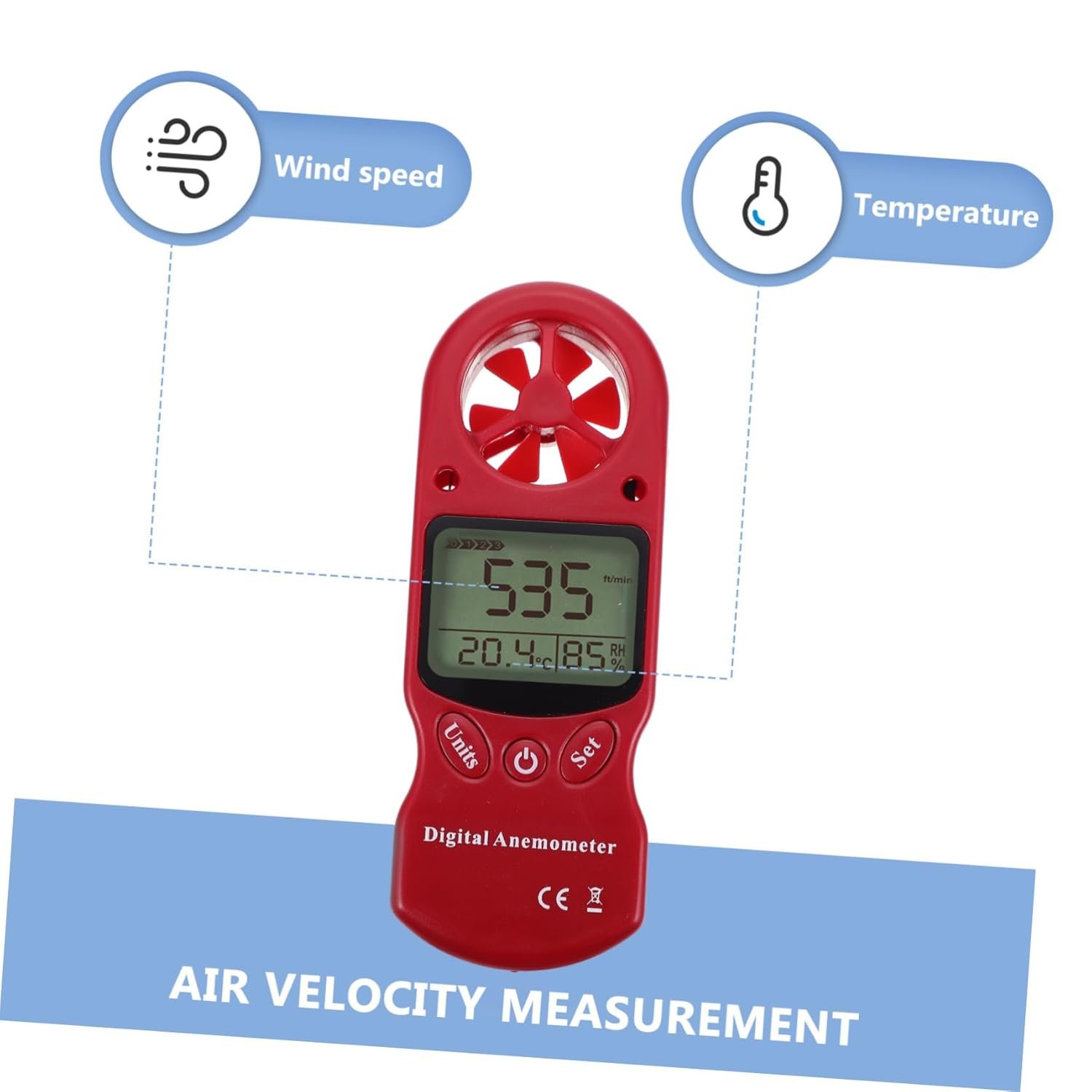ULTECHNOVO 1 Pièce Mini Anémomètre Numérique Portable avec Hygromètre Mesure Vitesse de Air Température et Humidité sans Pile Pratique pour Intérieur et Extérieur