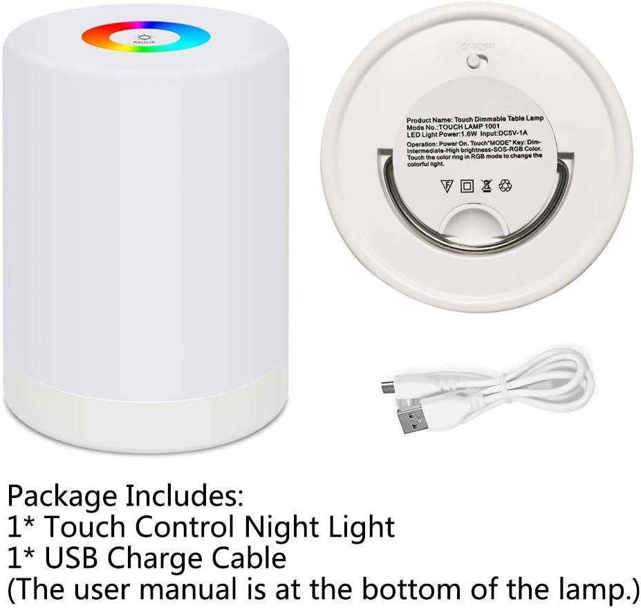 Veilleuse LED, Lampe de Table de Chevet Intelligente, Commande Tactile Dimmable, Rechargeable par USB, Portable, Changement de Couleur RGB pour les Enfants, Chambre Camping (Blanc Chaud)