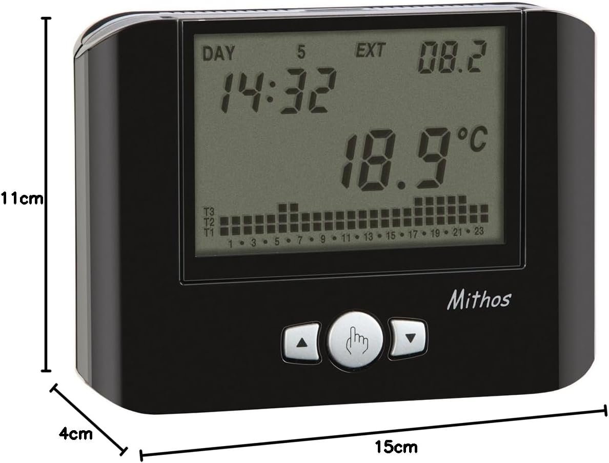 VEMER VE312500 MITHOS – Thermostat Mural avec Programmation Hebdomadaire, Alimenté par Pile, Noir