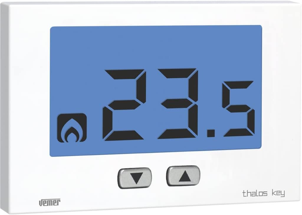 VEMER VE720900 THALOS Key – Thermostat d’ambiance pour Le Chauffage et la Climatisation, Clavier avec 2 Boutons pour Régler la Température, Alimentation 230V, Blanc