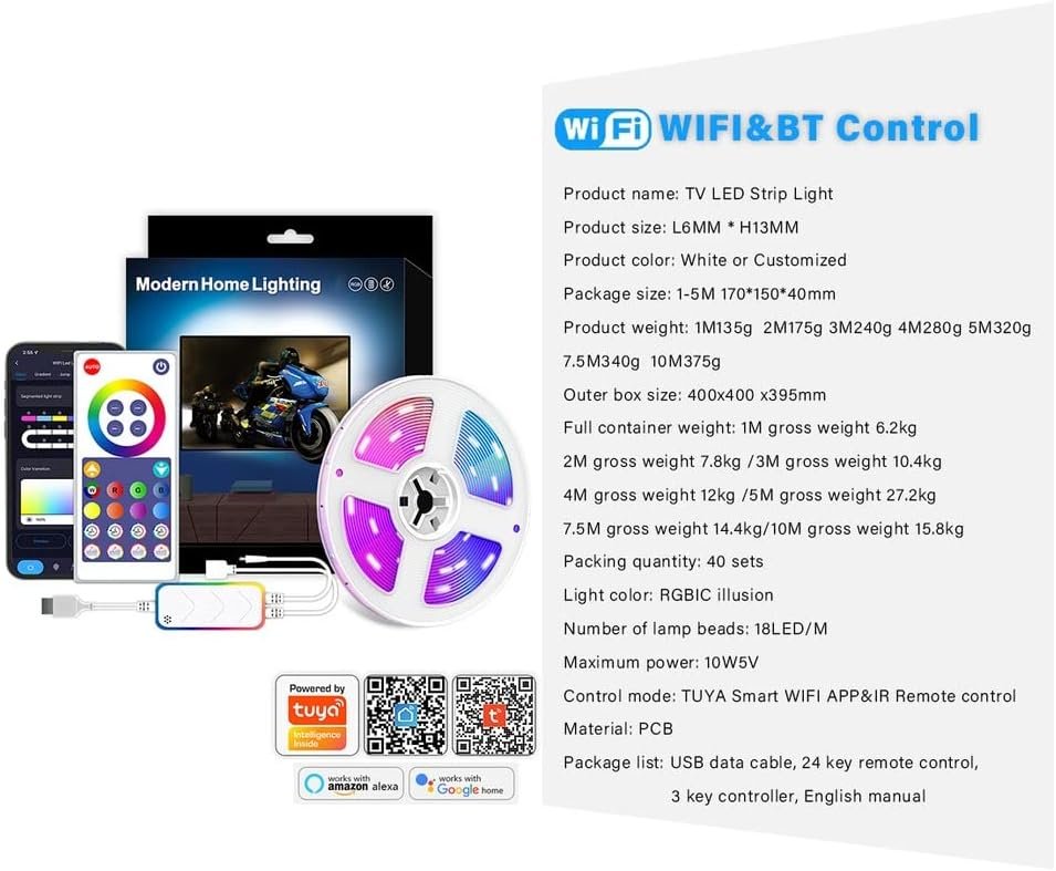 Vortex Q21-5M Wi-Fi TV bande lumineuse alimenté par USB 5V 5050RGBIC musique magique commande vocale Tuya bande de rétro-éclairage intelligente