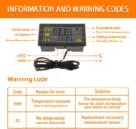 W3230 AC 110V-220V 20A Régulateur de température numérique, Interrupteur de Commande de Thermostat à Affichage numérique avec sonde de capteurs NTC 10K(-50 ℃ ~ 120 ℃)