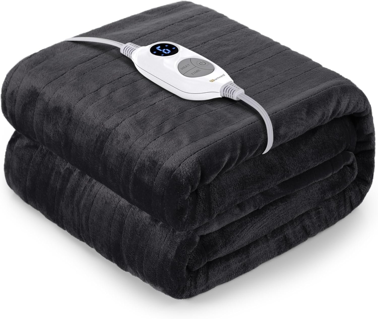 Warmrest Couverture Chauffante Électrique Flanelle 150×200 cm, 6 Niveaux De Température, 1-10 Heures Arrêt Automatique & Protection Contre La Surchauffe, Lavable en Machine, Gris Plaid Chauffant