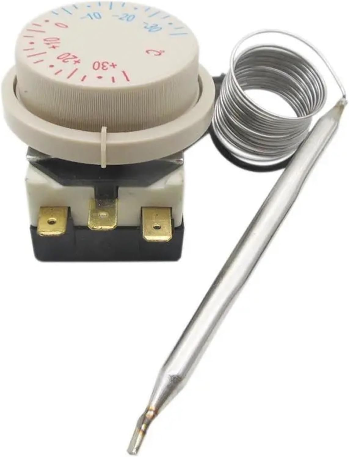 WATTSBVD Interrupteur de contrôle de température de réfrigérateur à Bouton de réglage 16A 3 Broches -30 °C à 30 °C Contrôleur de température Interrupteur de Thermostat Capillaire