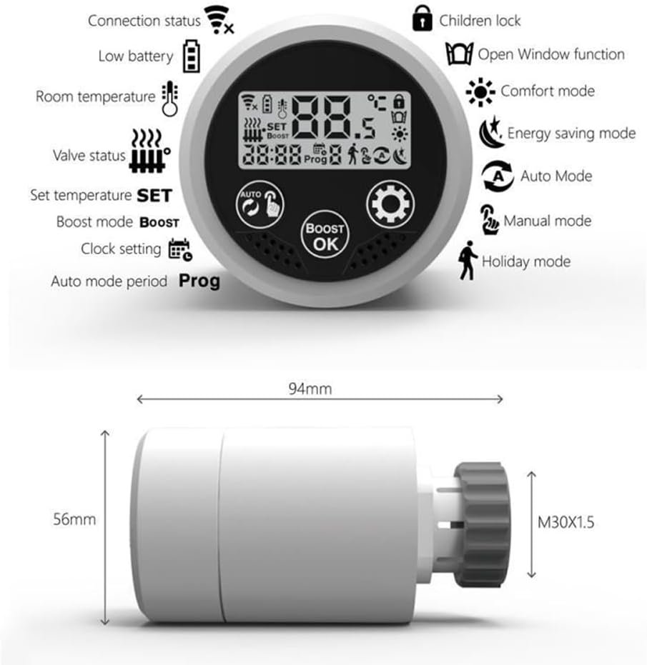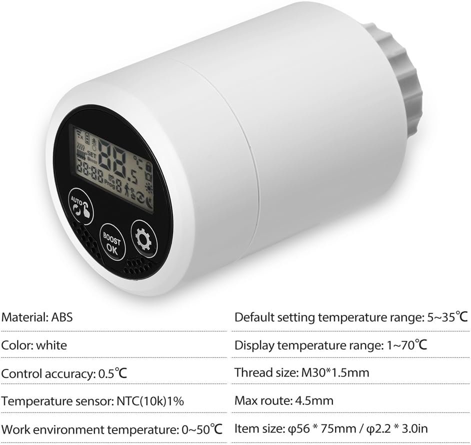Xbsduih Tuya Zigbee 3.0 Thermostat Vanne de Radiateur Contrôleur de Température Programmable Smart TRV pour Home Gateway