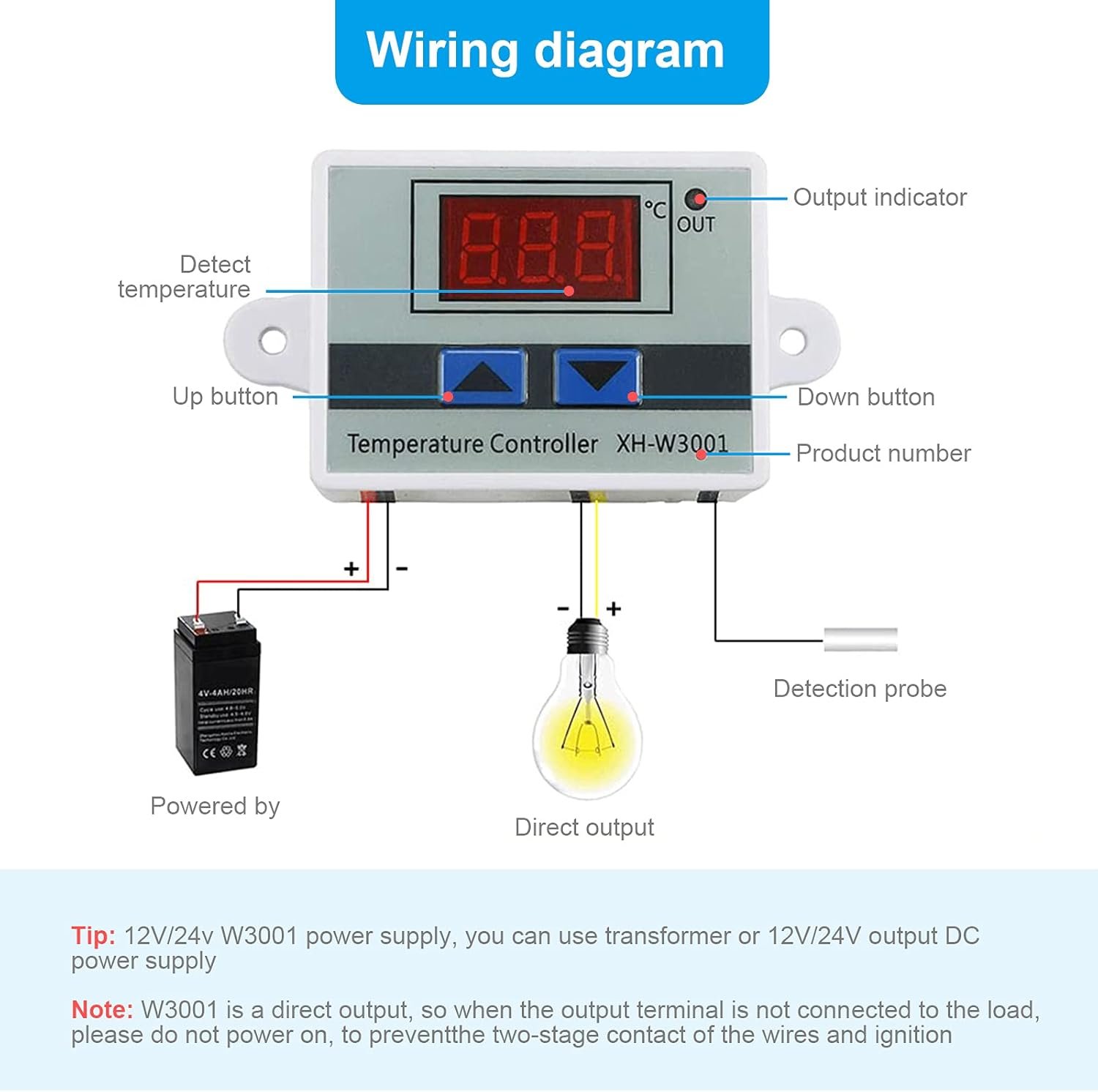 XH-W3001 Digital LCD Module de Contrôleur de Température, Microcomputer Thermorégulateur Thermocouple Thermostat avec Sonde étanche (12V/120W)