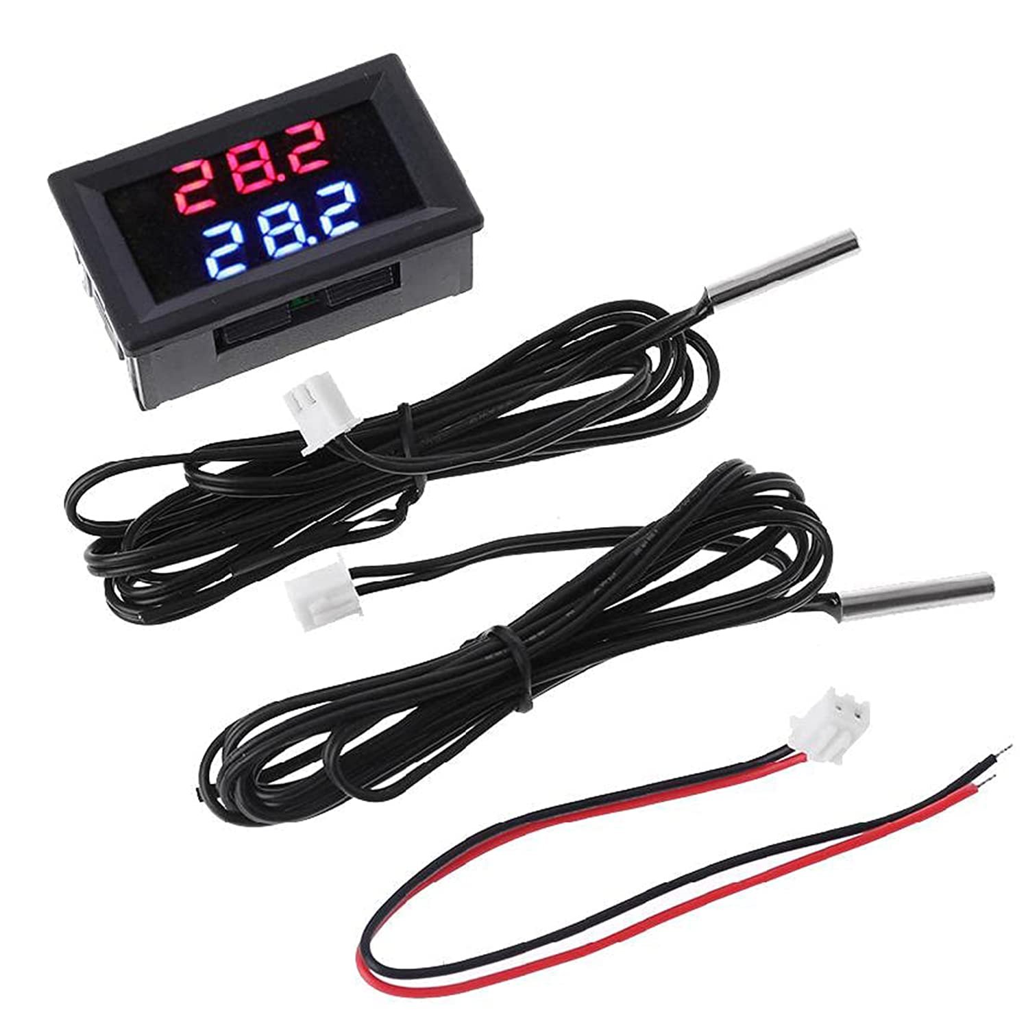 Yushu Thermomètre numérique à double canal 5 V-80 V, thermomètre à double affichage DC 5 V-80 V, 2 capteurs de température étanches NTC 12 V 24 V 72 V pour voiture, moto, four